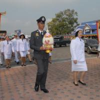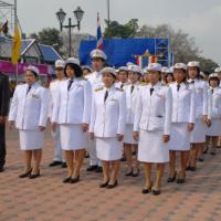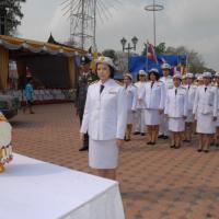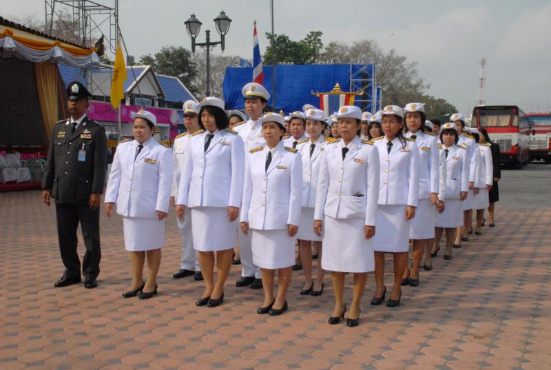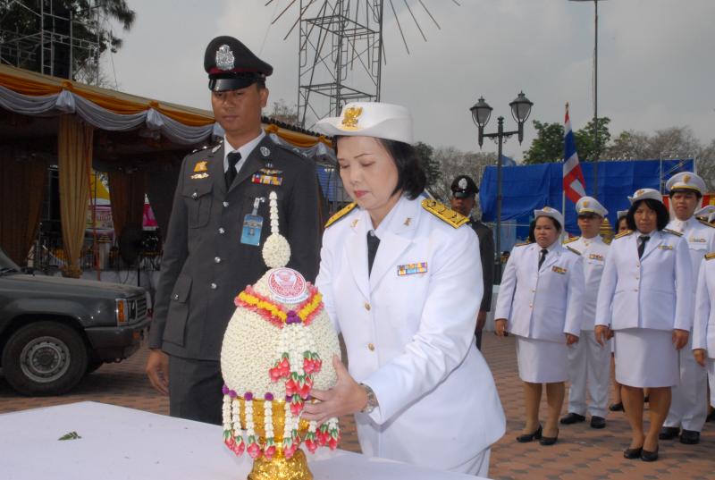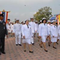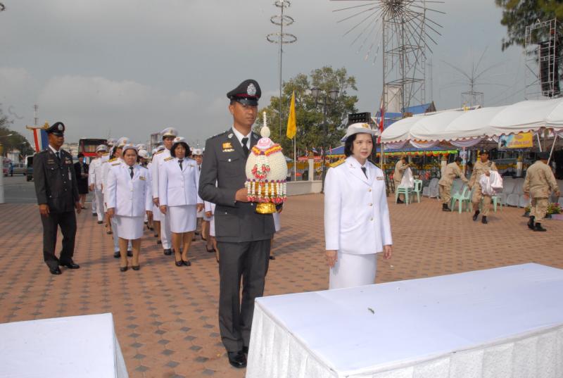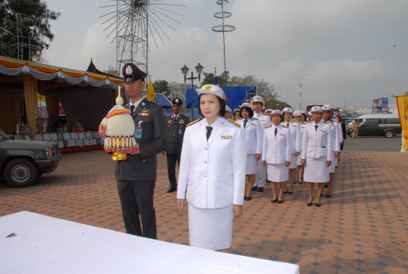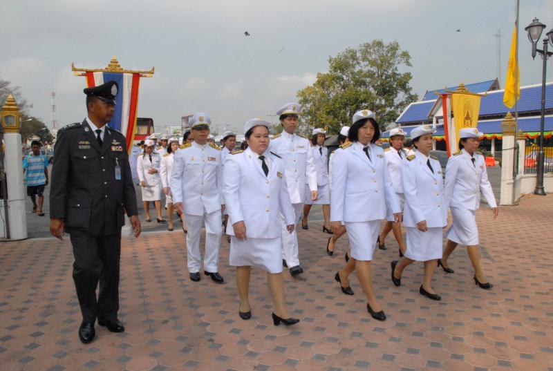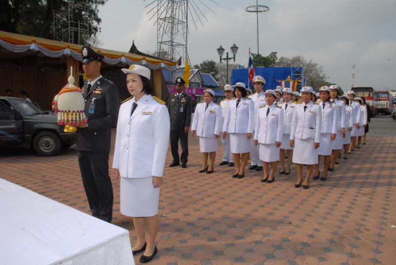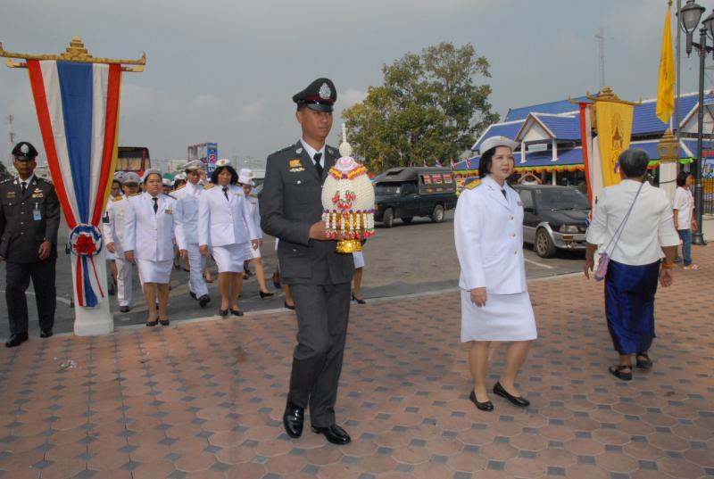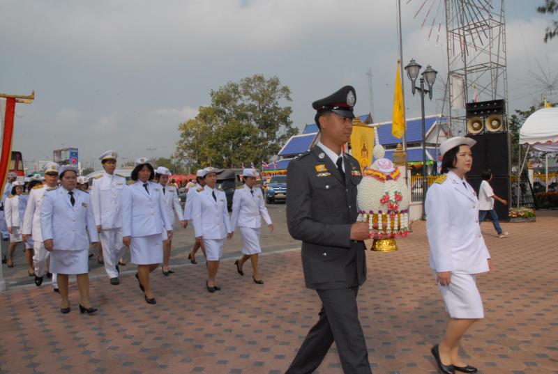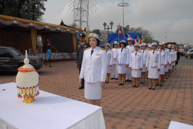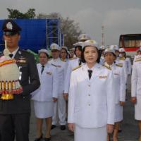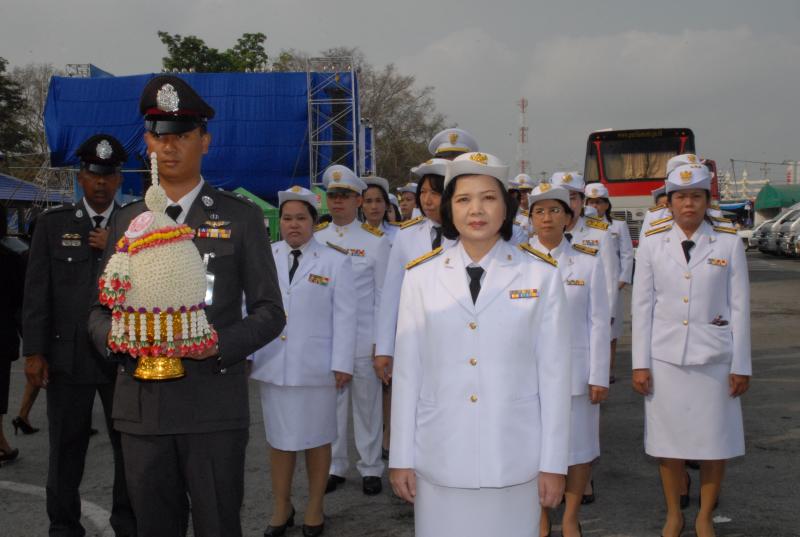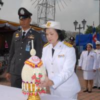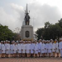 ข้าราชการสำนักงานเลขาธิการสภาผู้แทนราษฎรนำพานประดับพุ่มดอกไม้ถวายราชสักการะสมเด็จพระนเรศวรมหาราช