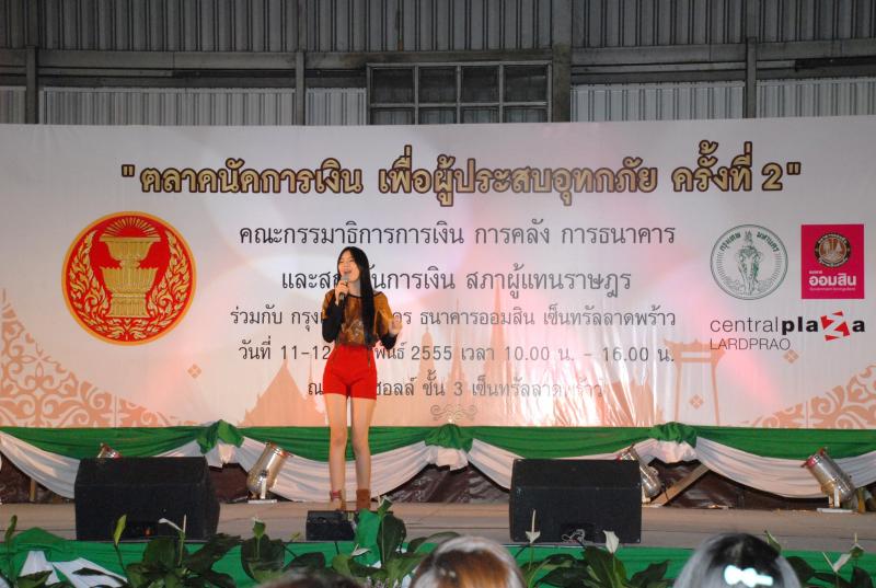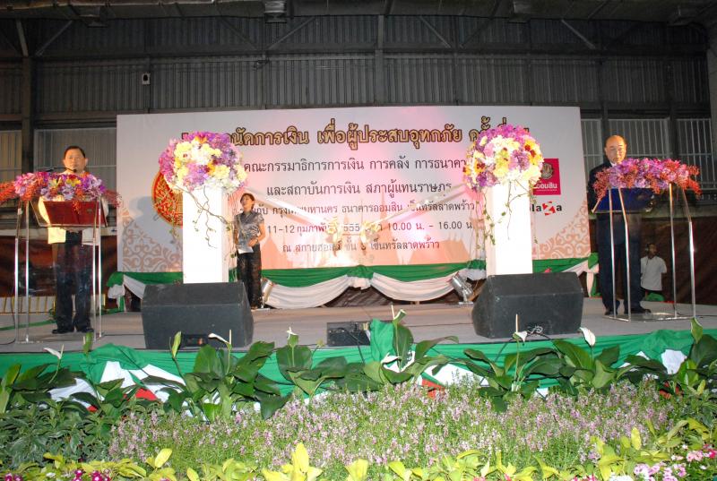 วันที่ ๑๑-๑๒ กุมภาพันธ์ ๒๕๕๕ เวลา ๑๐.๐๐ นาฬิกา ณ ศูนย์การค้าเซ็นทรัล พลาซ่า ลาดพร้าว  คณะกรรมาธิการการเงิน การคลัง การธนาคารและสถาบันการเงิน สภาผู้แทนราษฎร ร่วมกับศูนย์การค้าเซ็นทรัล พลาซ่า ลาดพร้าว จัดกิจกรรมตลาดนัดการเงิน เพื่อผู้ประสบอุทกภัย