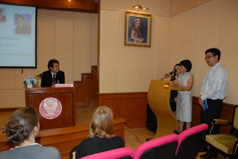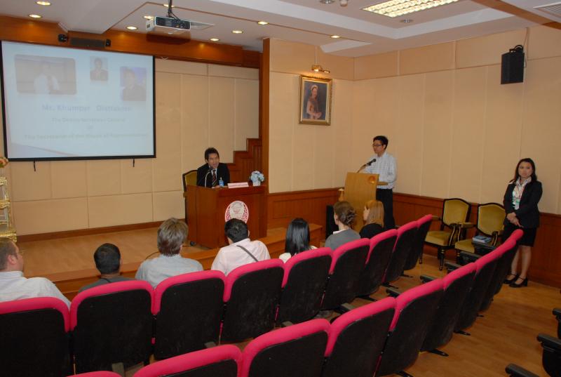 นายคัมภีร์ ดิษฐากรณ์ รองเลขาธิการสภาผู้แทนราษฎร บรรยายในหัวข้อเรื่อง ระบบงานรัฐสภา แก่คณะผู้เชี่ยวชาญด้านธรรมาภิบาลที่เข้าร่วมการประชุม "Sector network Governance Asia"