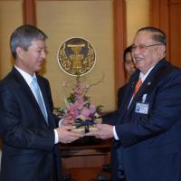 นายชัย ชิดชอบ ประธานคณะกรรมาธิการการปกครอง สภาผู้แทนราษฎร ให้การรับรอง Mr. Chung Hae - moon อดีตเอกอัครราชทูตสาธารณรัฐเกาหลีประจำประเทศไทย และคณะ