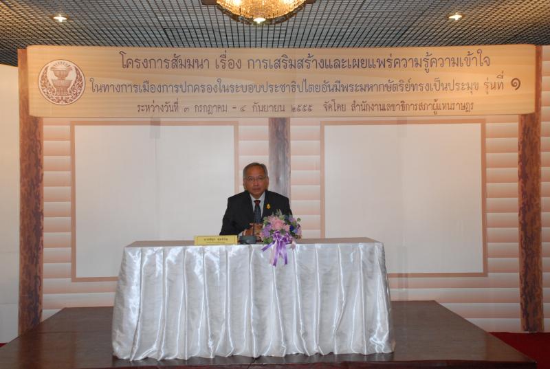 พิธีเปิดการสัมมนาเรื่อง "การเสริมสร้างและเผยแพร่ความรู้ ความเข้าใจในทางการเมืองการปกครองในระบอบประชาธิปไตยอันมีพระมหากษัตริยทรงเป็นประมุข"
