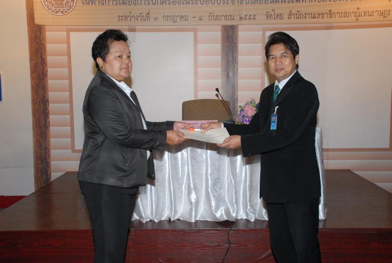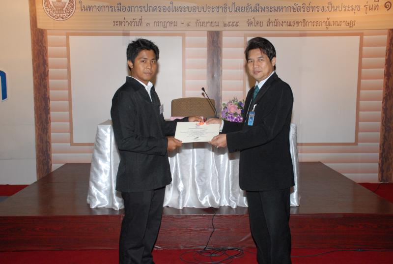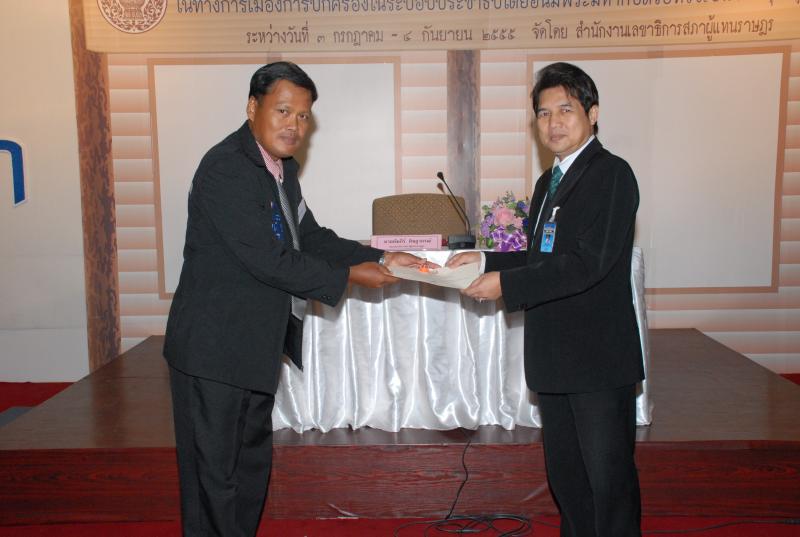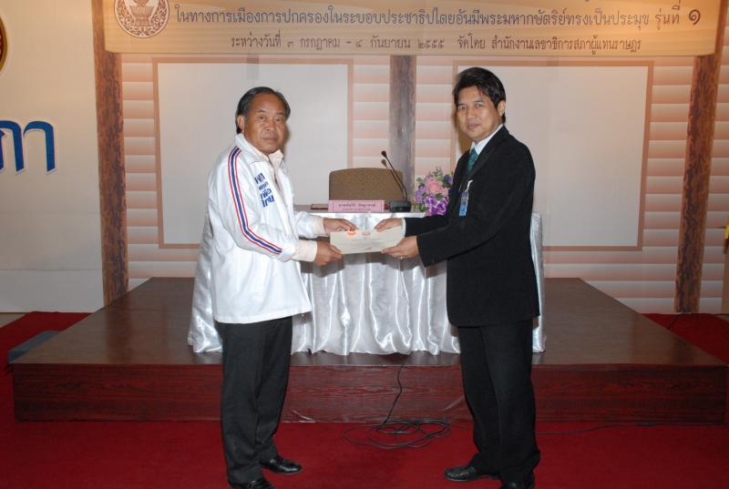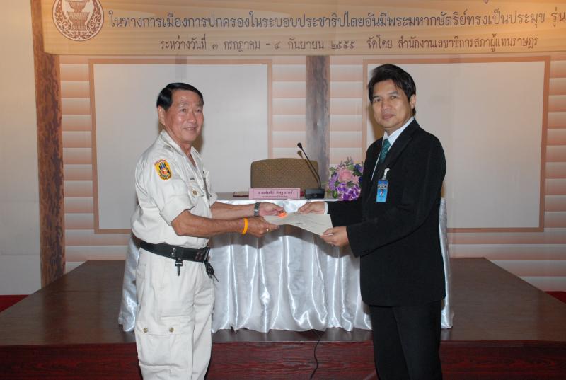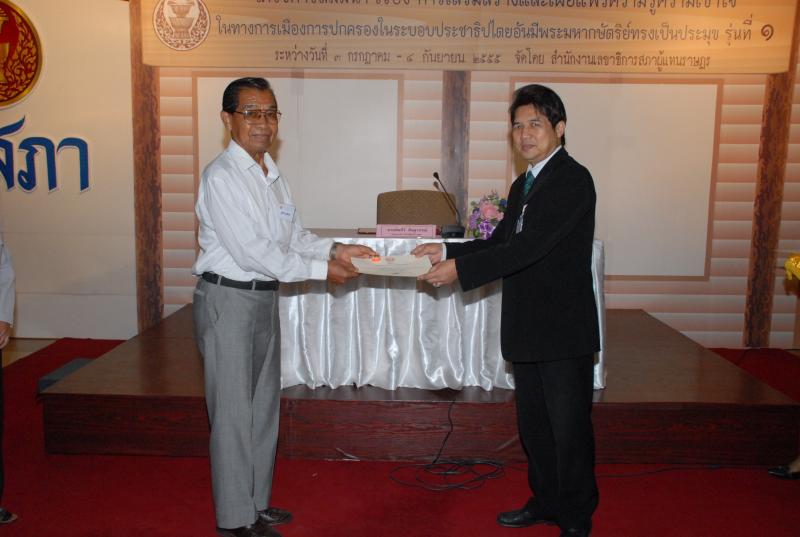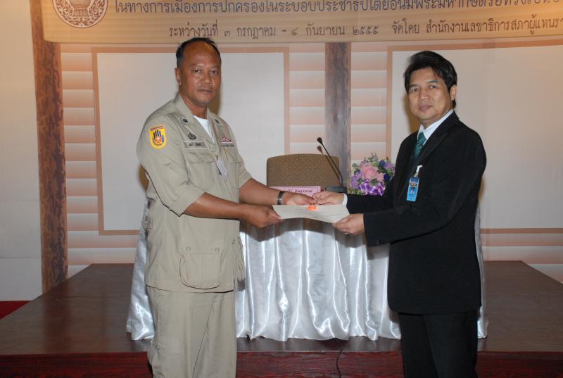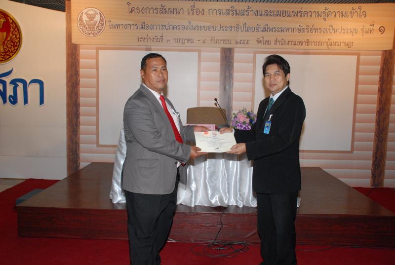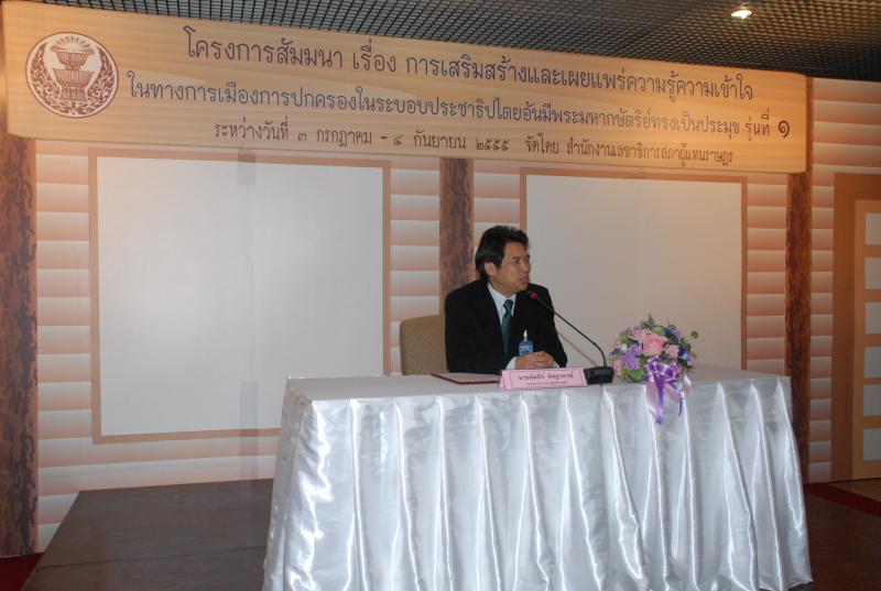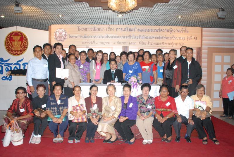 พิธีปิดการสัมมนาเรื่อง "การเสริมสร้างและเผยแพร่ความรู้ ความเข้าใจในทางการเมืองการปกครองในระบอบประชาธิปไตยอันมีพระมหากษัตริยทรงเป็นประมุข" แก่อาสาสมัครป้องกันภัยฝ่ายพลเรือน รุ่นที่ ๔
