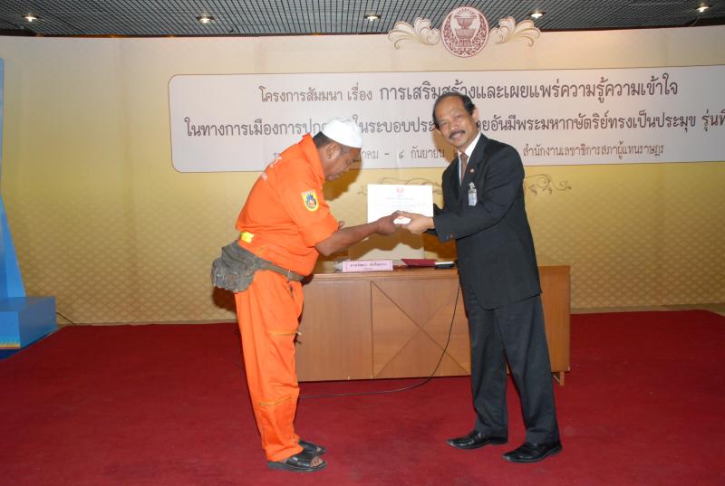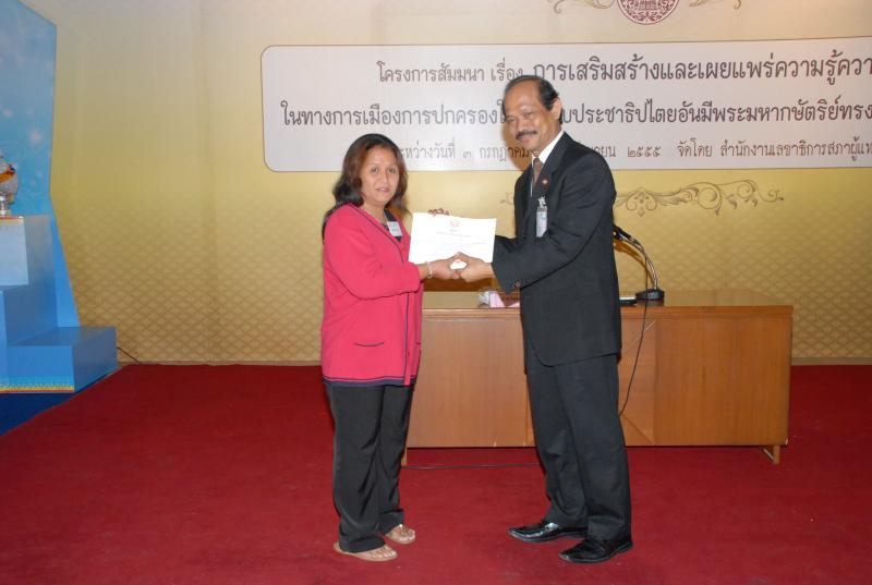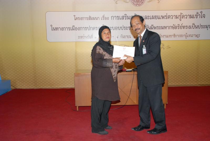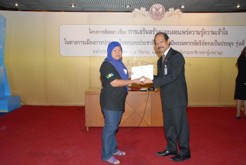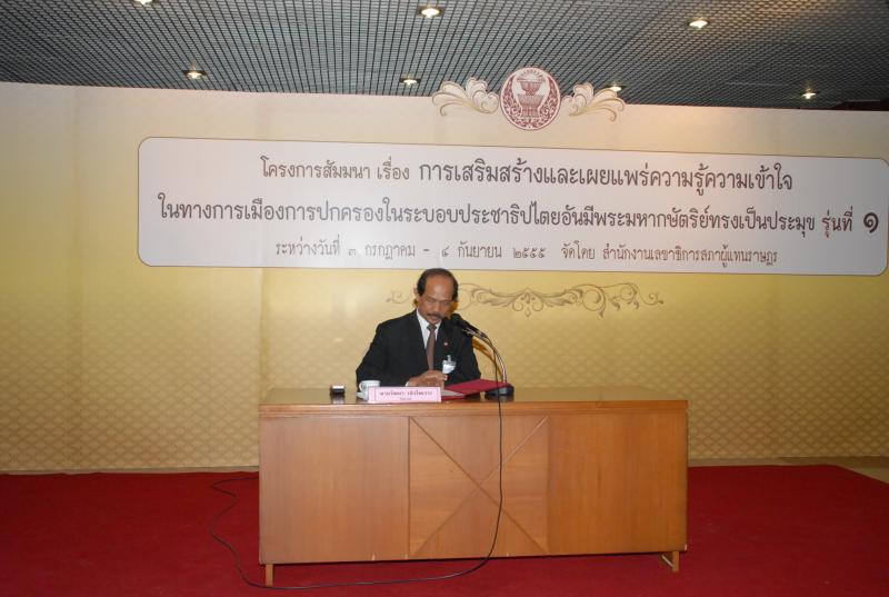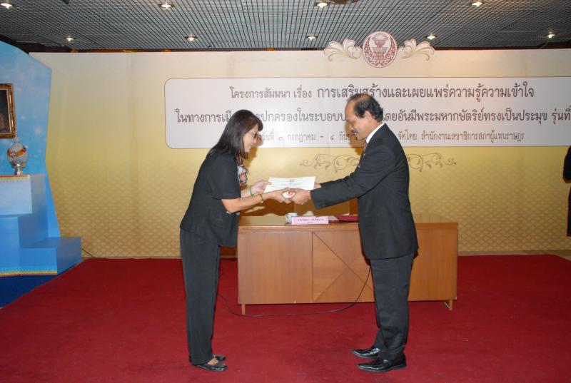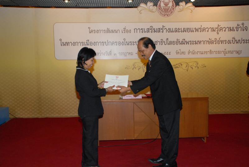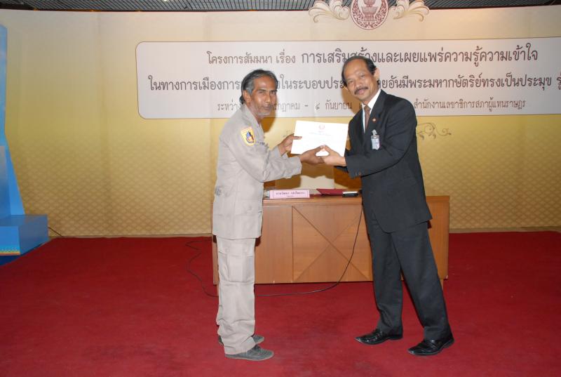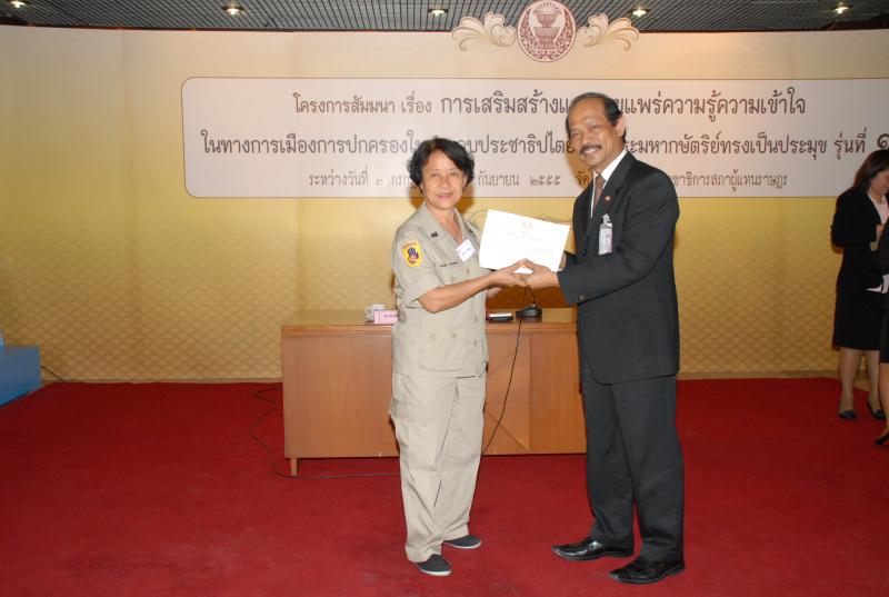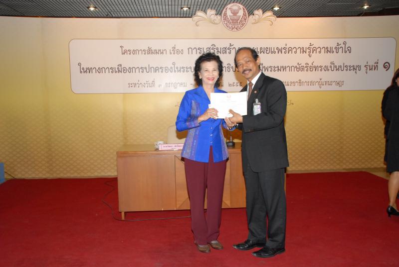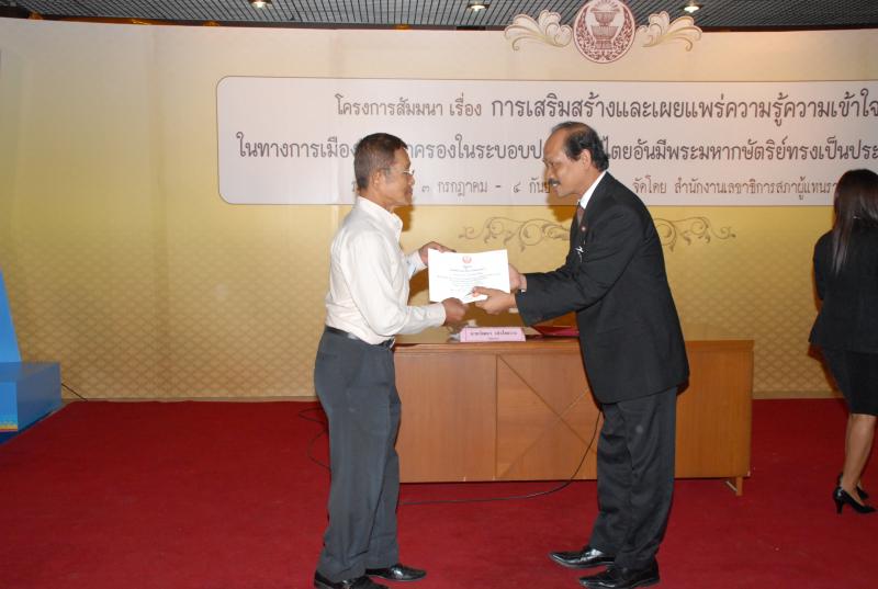 พิธีปิดการสัมมนาเรื่อง "การเสริมสร้างและเผยแพร่ความรู้ ความเข้าใจในทางการเมืองการปกครองในระบอบประชาธิปไตยอันมีพระมหากษัตริยทรงเป็นประมุข" รุ่นที่ ๑๖