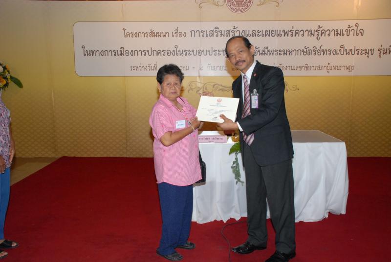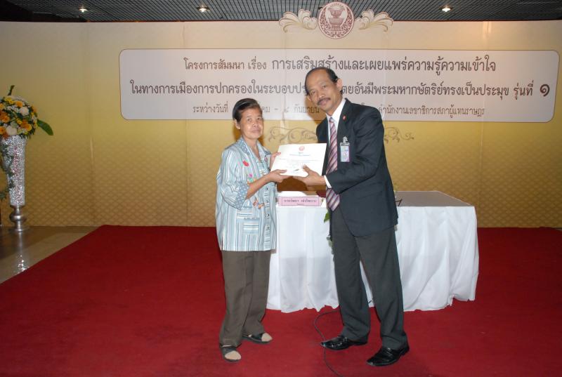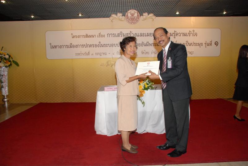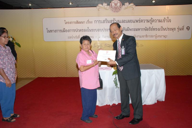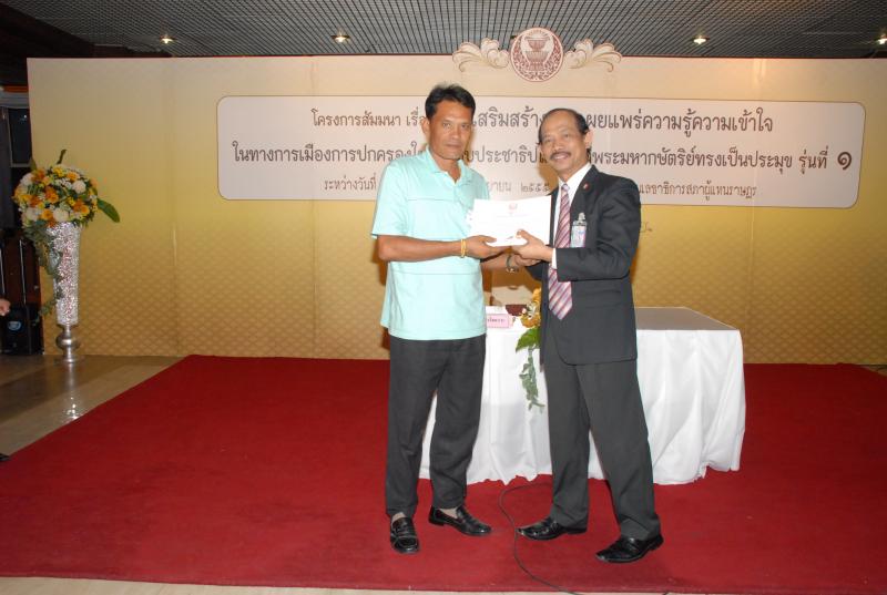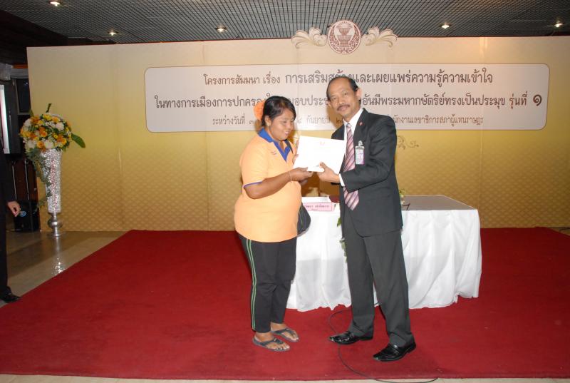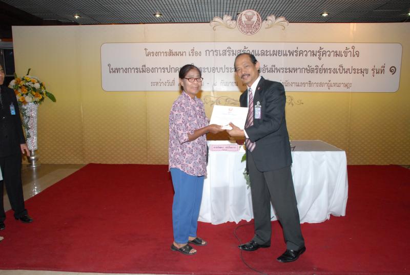 พิธีปิดการสัมมนาเรื่อง "การเสริมสร้างและเผยแพร่ความรู้ ความเข้าใจในทางการเมืองการปกครองในระบอบประชาธิปไตยอันมีพระมหากษัตริยทรงเป็นประมุข" รุ่นที่ ๑๗