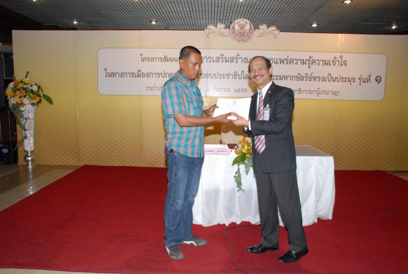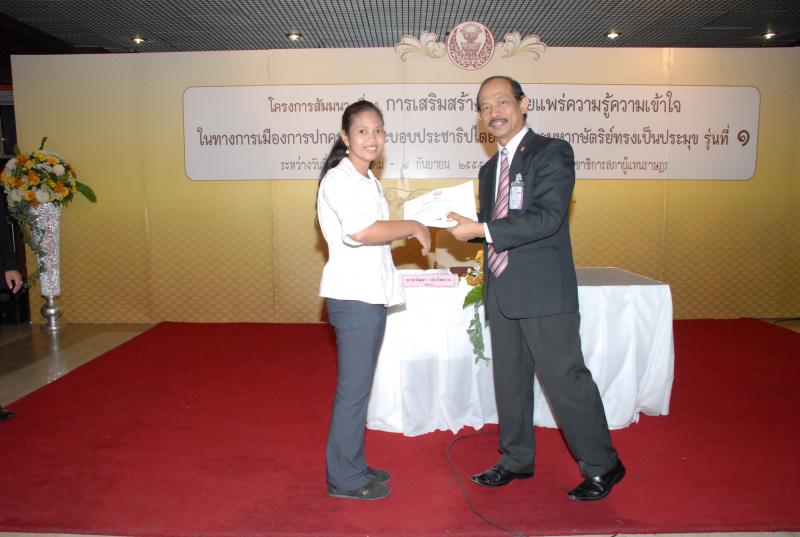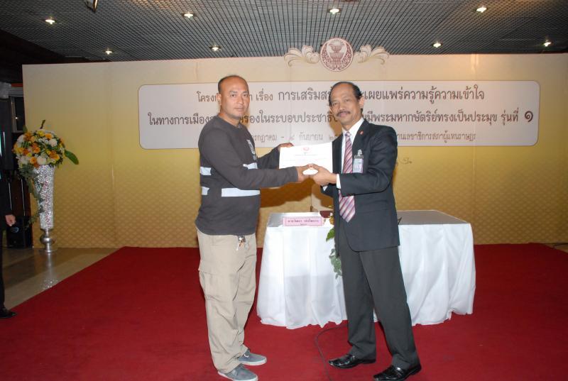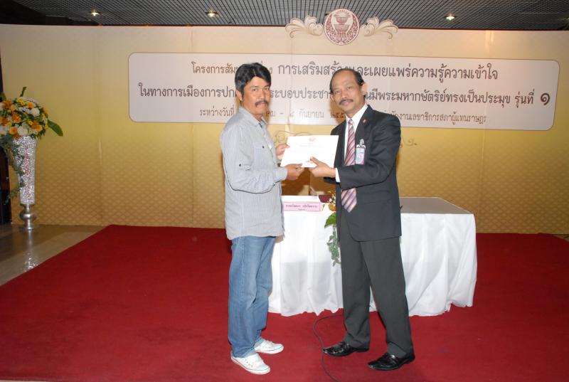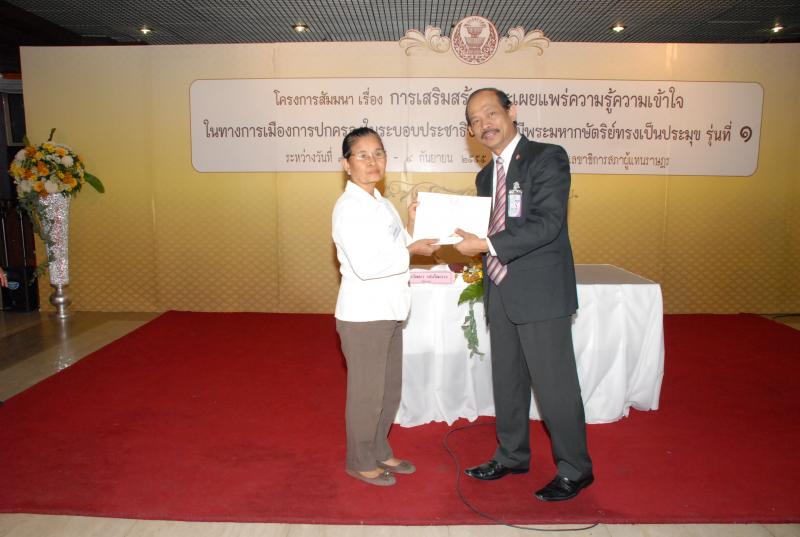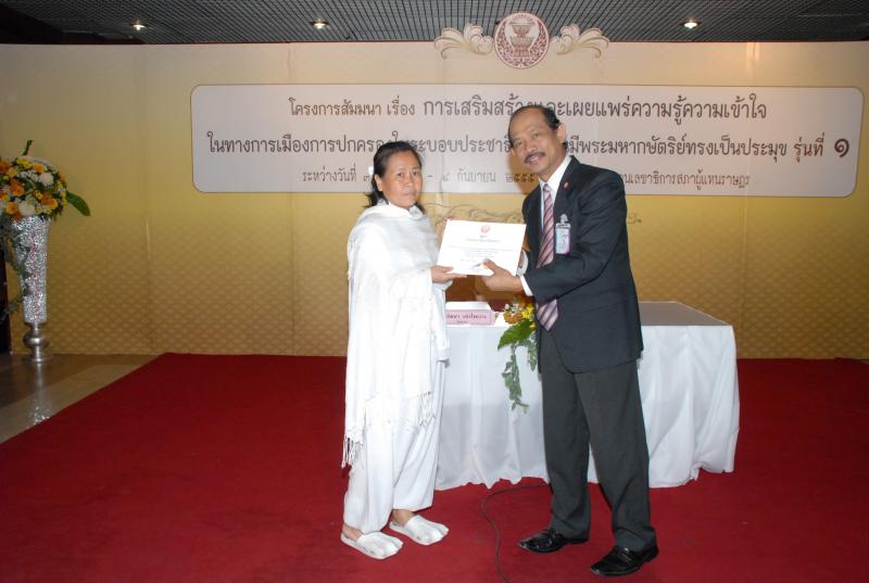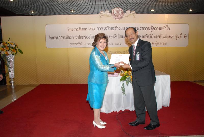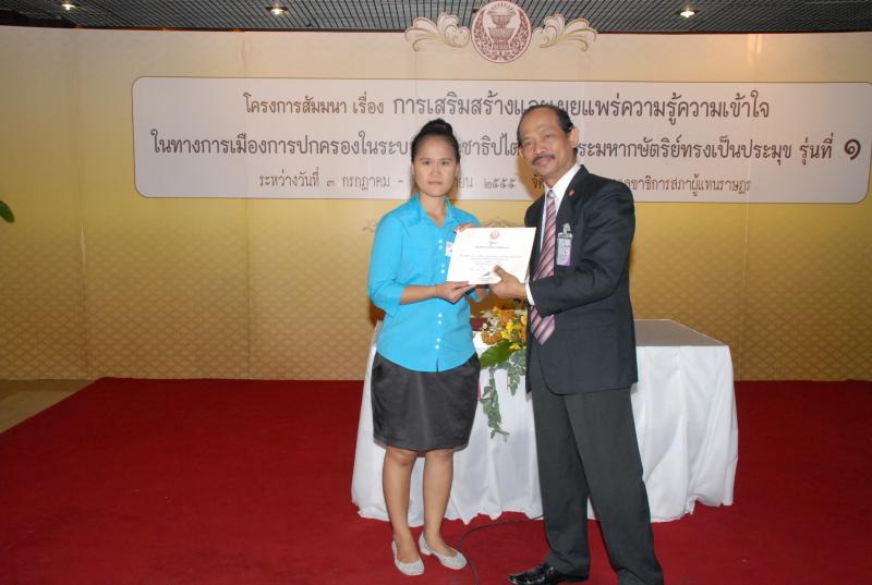 พิธีปิดการสัมมนาเรื่อง "การเสริมสร้างและเผยแพร่ความรู้ ความเข้าใจในทางการเมืองการปกครองในระบอบประชาธิปไตยอันมีพระมหากษัตริยทรงเป็นประมุข" รุ่นที่ ๑๗