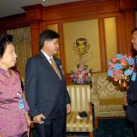 วันศุกร์ที่ ๕ ตุลาคม ๒๕๕๕ เวลา ๑๓.๑๕ นาฬิกา  ณ  ห้องรับรอง ชั้น ๒ อาคารรัฐสภา ๑ นายจเร  พันธุ์เปรื่อง รองเลขาธิการสภาผู้แทนราษฎร พร้อมด้วยผู้บริหารของสำนักงานเลขาธิการสภาผู้แทนราษฎร แสดงความยินดีกับนายสุวิจักขณ์ นาควัชระชัย ในโอกาสได้รับตำแหน่งเลขาธิการสภาผู้แทนราษฎรคนใหม่