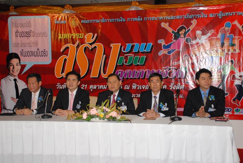 คณะกรรมาธิการการเงิน การคลัง การธนาคารและสถาบันการเงิน สภาผู้แทนราษฎร แถลงข่าวเรื่องการจัดมหกรรม "สร้างงาน สร้างเงิน สร้างคุณภาพชีวิต"