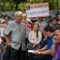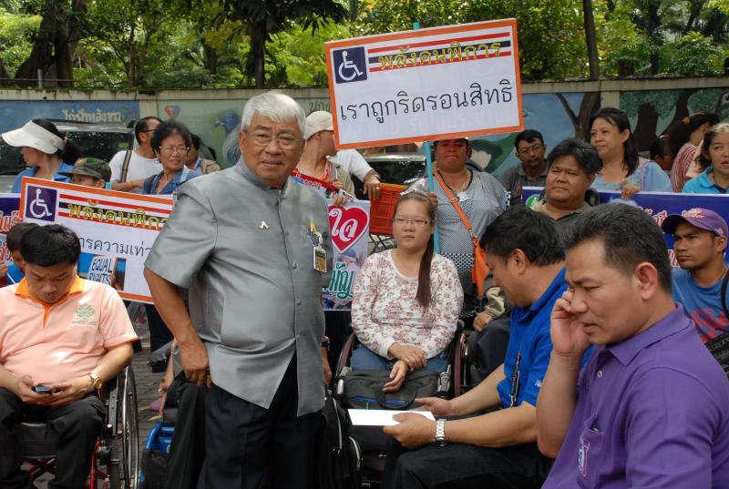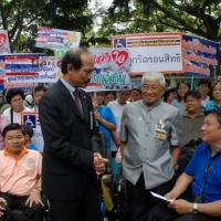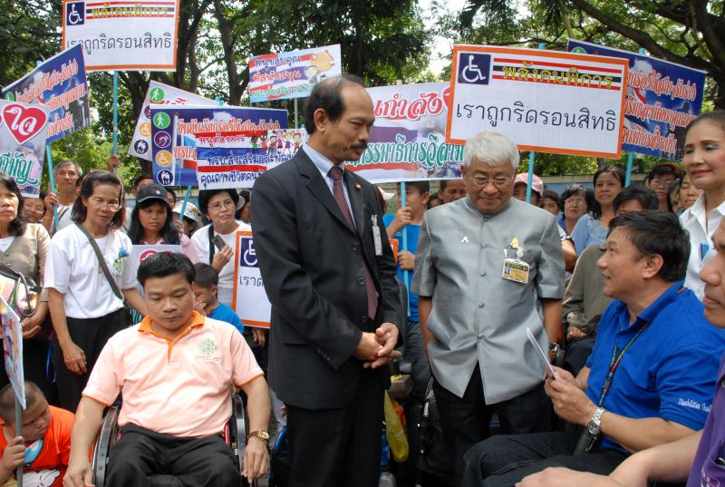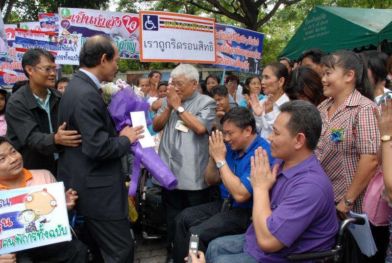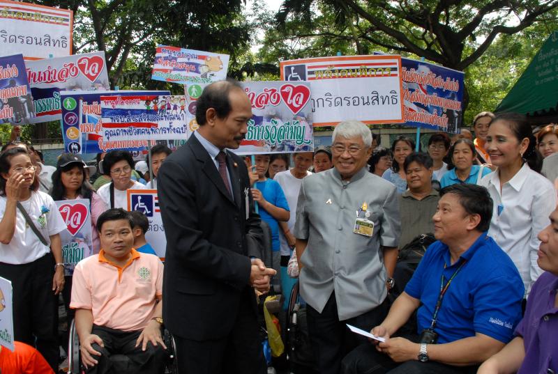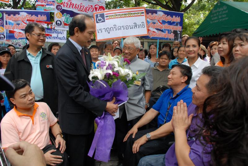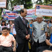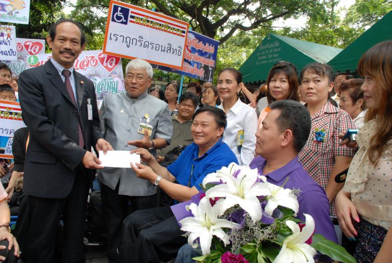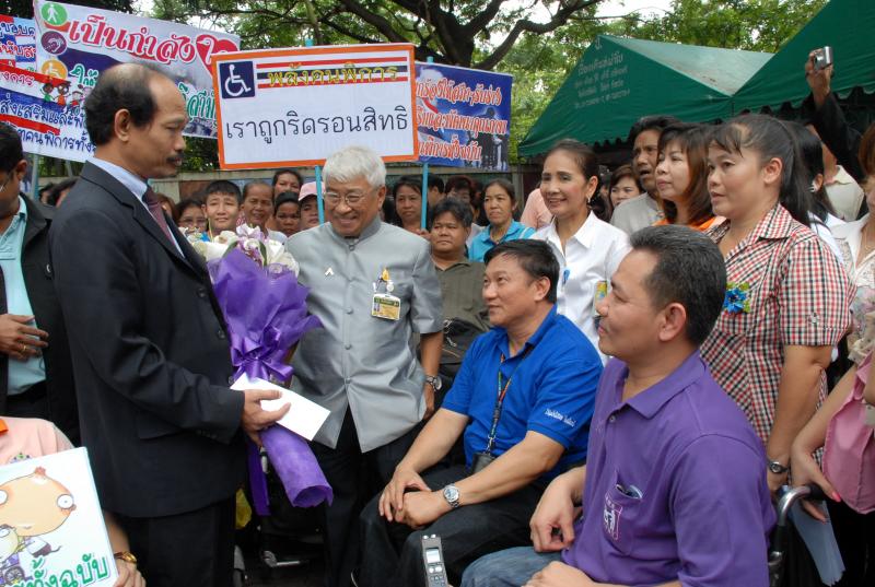 นายวัฒนา เซ่งไพเราะ โฆษกประธานสภาผู้แทนราษฎร รับยื่นหนังสือจากสภาคนพิการฯ เพื่อขอให้สภาสนับสนุนร่าง พ.ร.บ.ส่งเสริมและพัฒนาคุณภาพชีวิตคนพิการ