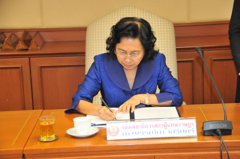 วันพฤหัสบดีที่ ๒๙ พฤศจิกายน ๒๕๕๕ เวลา ๐๙.๓๐ นาฬิกา ณ ห้องประชุมกรรมาธิการหมายเลข ๓๗๐๑ ชั้น ๗ อาคารรัฐสภา ๓ นางพรรณิภา  เสริมศรี  รองเลขาธิการสภาผู้แทนราษฎร ร่วมลงนามคำรับรองปฎิบัติราชการ ประจำปี พ.ศ.๒๕๕๖ กับผู้อำนวยการสำนักภายใต้การกำกับดูแล