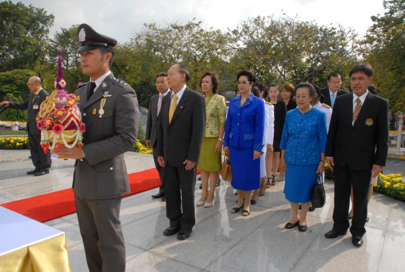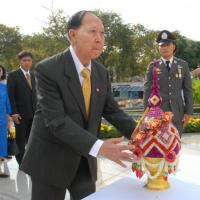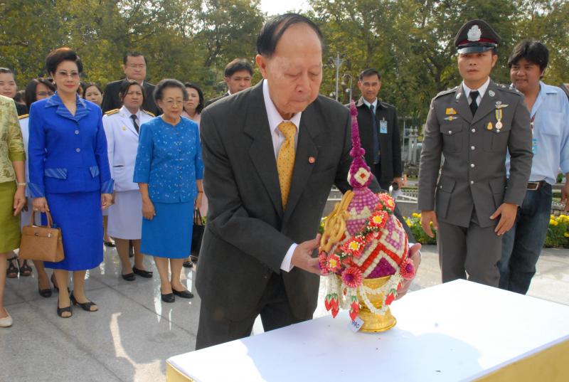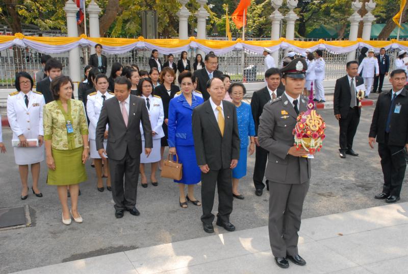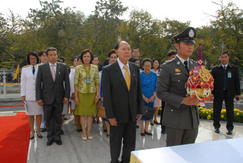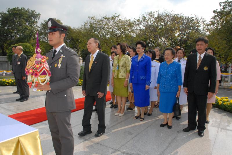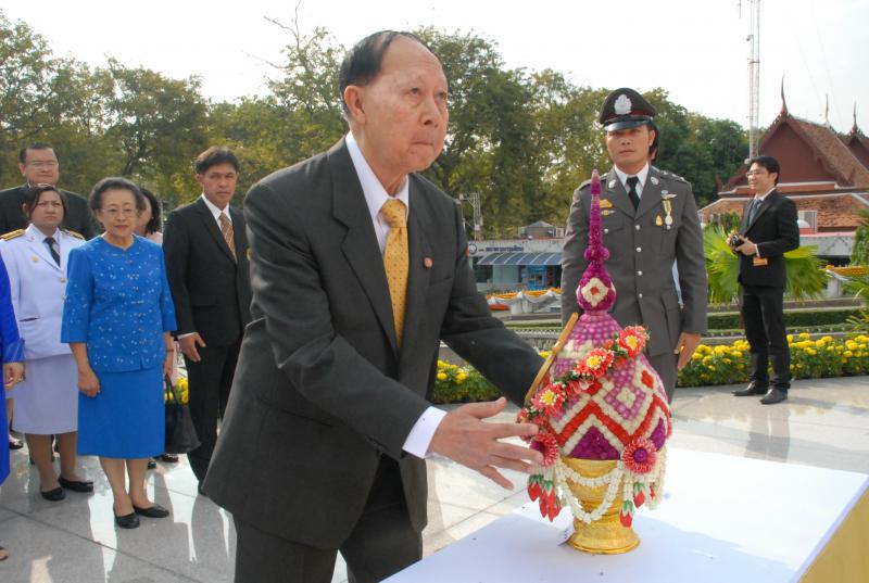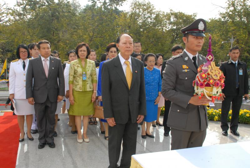 พลเรือเอก หม่อมเจ้าปุสาณ สวัสดิวัตน์ ประธานกรรมการมูลนิธิพระบรมราชานุสาวรีย์พระบาทสมเด็จพระปกเกล้าเจ้าอยู่หัวและสมเด็จพระนางเจ้ารำไพพรรณี พร้อมด้วยคณะกรรมการฯ นำพานประดับพุ่มดอกไม้ถวายบังคมในนาม มูลนิธิพระบรมราชานุสรณ์พระบาทสมเด็จพระปกเกล้าเจ้าอยู่หัว