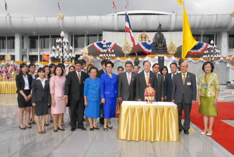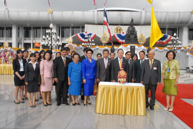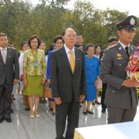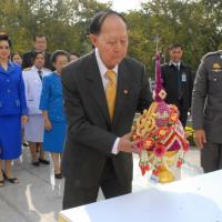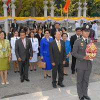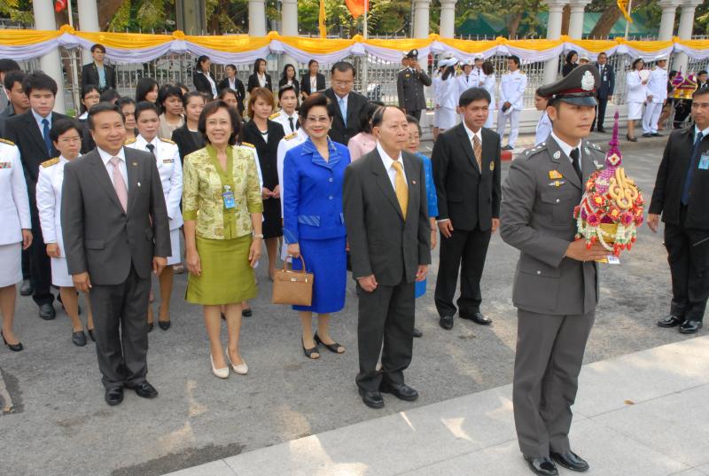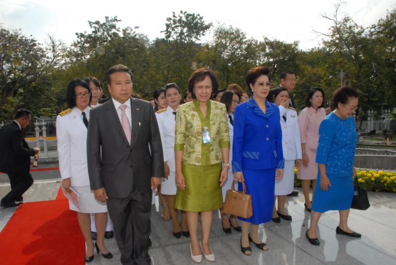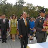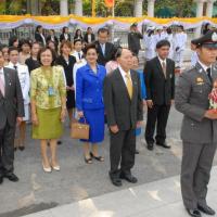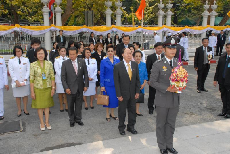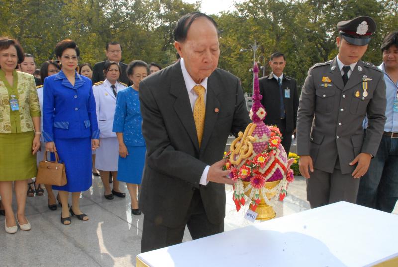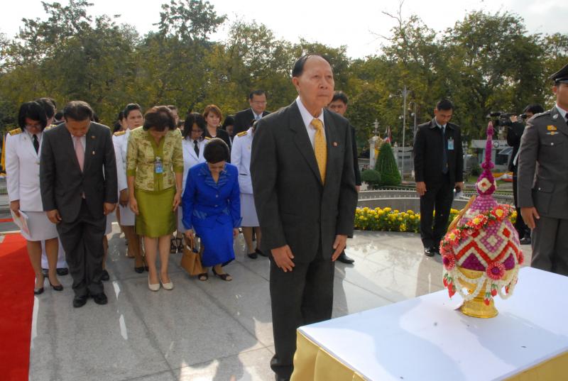พลเรือเอก หม่อมเจ้าปุสาณ สวัสดิวัตน์ ประธานกรรมการมูลนิธิพระบรมราชานุสาวรีย์พระบาทสมเด็จพระปกเกล้าเจ้าอยู่หัวและสมเด็จพระนางเจ้ารำไพพรรณี พร้อมด้วยคณะกรรมการฯ นำพานประดับพุ่มดอกไม้ถวายบังคมในนาม มูลนิธิพระบรมราชานุสรณ์พระบาทสมเด็จพระปกเกล้าเจ้าอยู่หัว