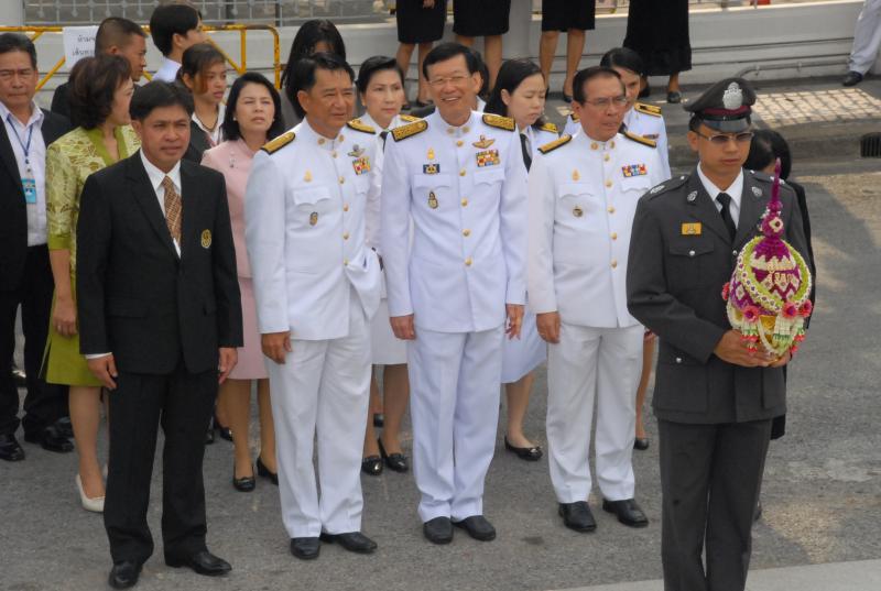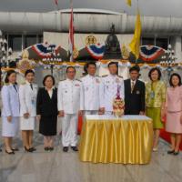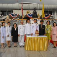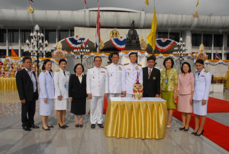 นายไพบูลย์ นิติตะวัน อุปนายกสโมสรรัฐสภา พร้อมด้วยคณะกรรมการสโมสรรัฐสภา นำพานประดับพุ่มดอกไม้ถวายบังคมในนาม “สโมสรรัฐสภา”