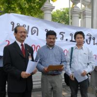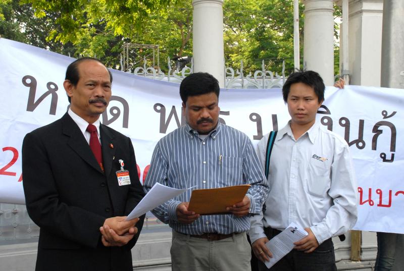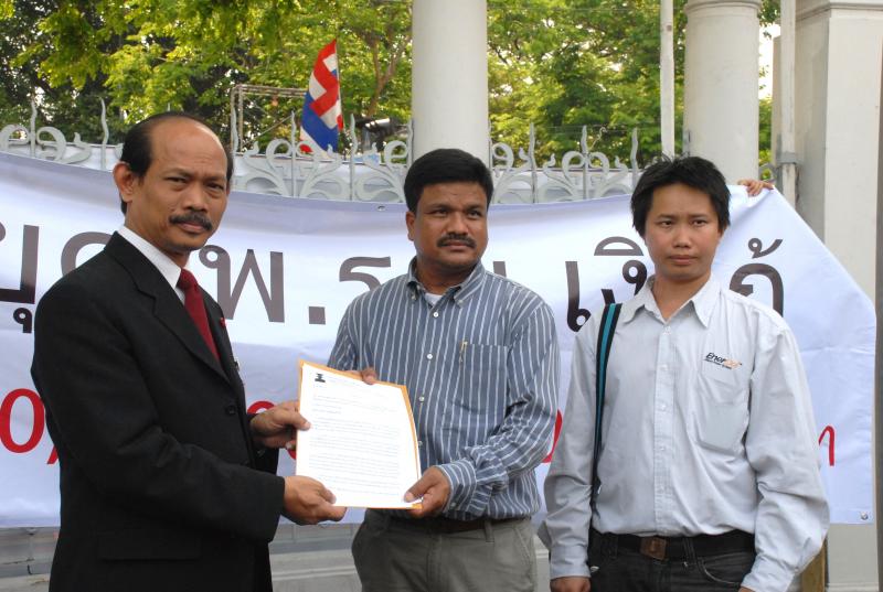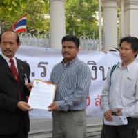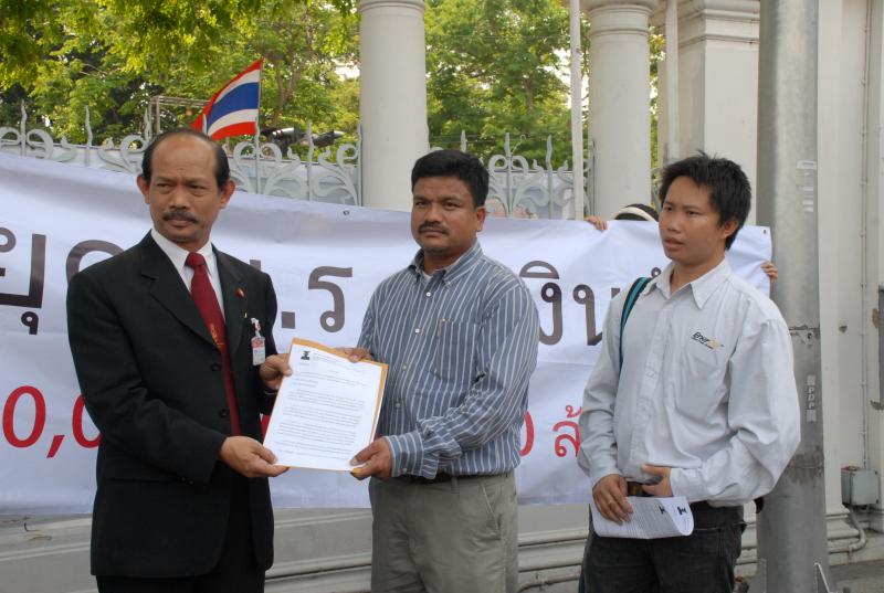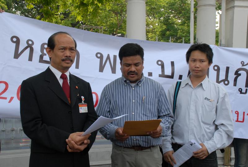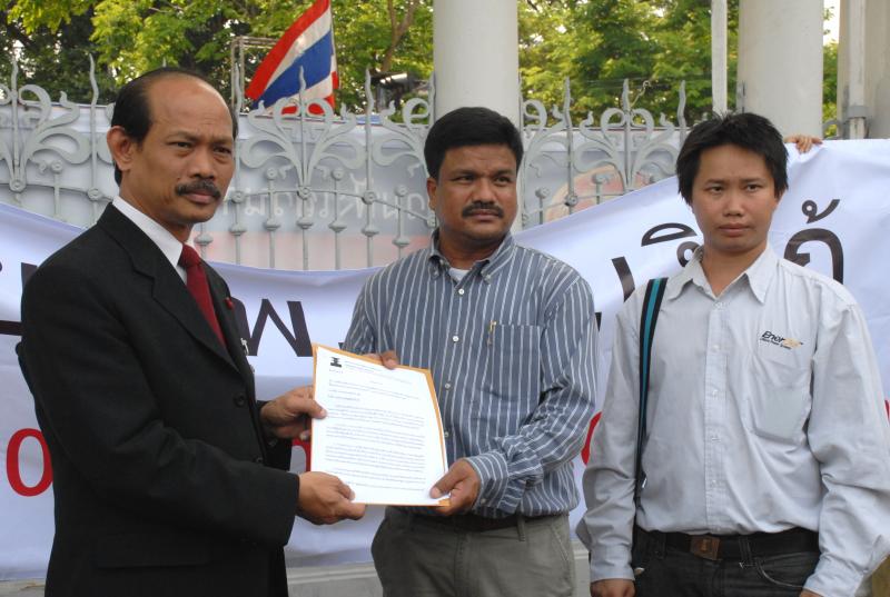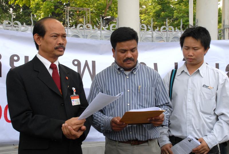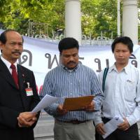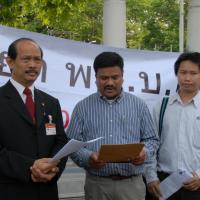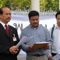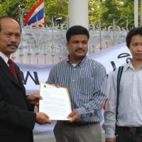 นายวัฒนา เซ่งไพเราะ โฆษกประธานสภาผู้แทนราษฎร รับการยื่นหนังสือจากนายสุริยันต์ ทองหนูเอียด เลขาธิการคณะกรรมการรณรงค์เพื่อประชาธิปไตย (ครป.)และคณะ