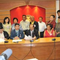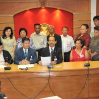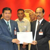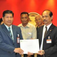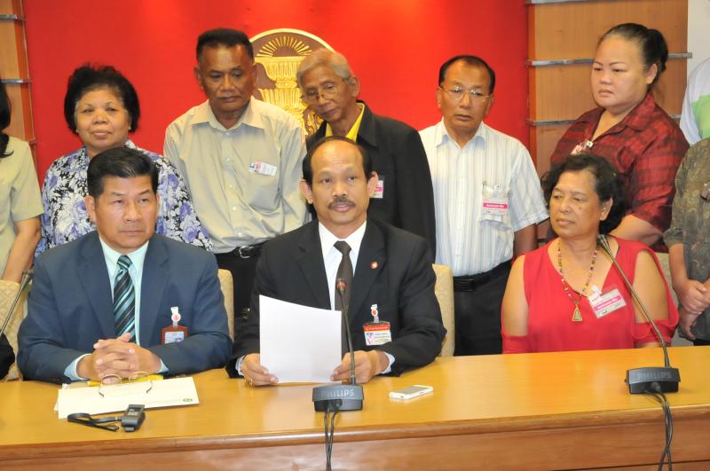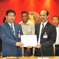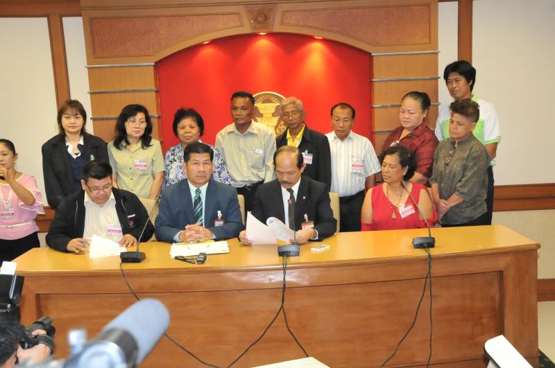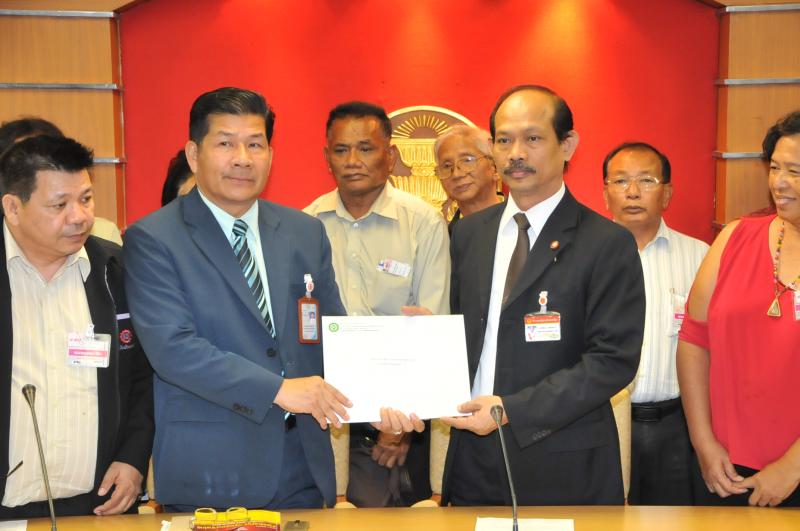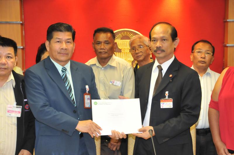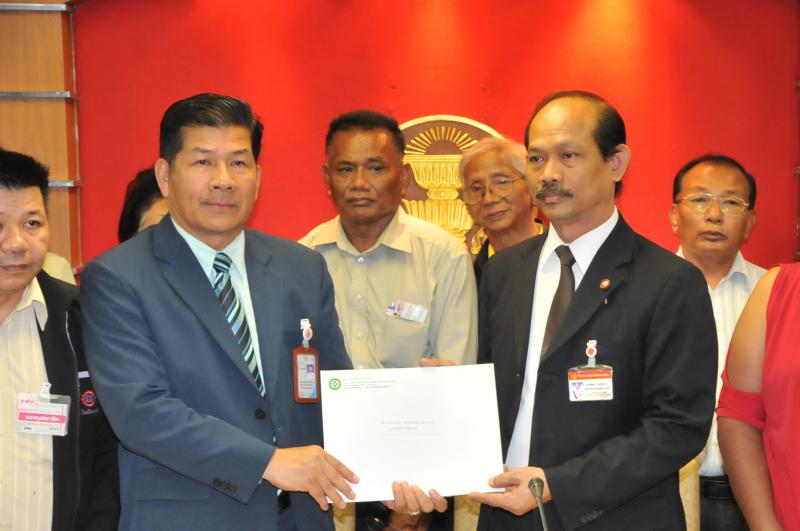 นายวัฒนา เซ่งไพเราะ โฆษกประธานสภาผู้แทนราษฎร รับหนังสือจากสมาคมปลอดภัยไว้ก่อนและสมัชชาสภาองค์กรชุมชนกรุงเทพมหานคร