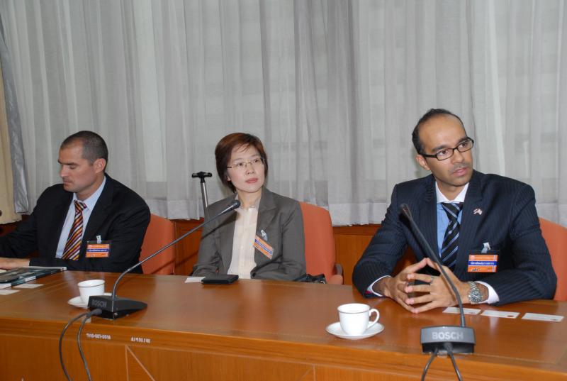 | วันพุธที่ ๓๑ กรกฎาคม ๒๕๕๖ เวลา ๑๐.๓๐ นาฬิกา ณ ห้องประชุมคณะกรรมาธิการ หมายเลข ๔ ชั้น ๒ อาคารรัฐสภา ๑ นายสุวิจักขณ์ นาควัชระชัย เลขาธิการสภาผู้แทนราษฎร ให้การรับรองนายบารัค ซาราบี เลขานุการเอกผู้ช่วยทูตฝ่ายพาณิชย์ สถานเอกอัครราชทูตอิสราเอล และคณะ ในโอกาสขอเข้าเยี่ยมคารวะ เพื่อแลกเปลี่ยนความคิดเห็นและศึกษาการดำเนินการปรับปรุงโครงสร้างของสำนักรักษาความปลอดภัยของรัฐสภา หลังคณะกรรมการศึกษาโครงสร้างของสำนักรักษาความปลอดภัยของรัฐสภา ได้เดินทางไปศึกษาดูงานด้านการรักษาความปลอดภัย ณ รัฐอิสราเอล เมื่อเดือนเมษายนที่ผ่านมา |