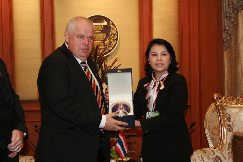 นางจันทร์เพ็ญ อานามวัฒน์ รองเลขาธิการสภาผู้แทนราษฎร ให้การรับรองนายโรเนน พล็อต (Ronen Plot) เลขาธิการสำนักงานรัฐสภาอิสราเอล