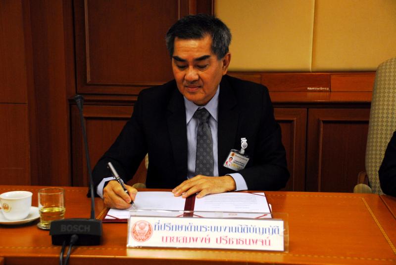 นายสุวิจักขณ์ นาควัชระชัย เลขาธิการสภาผู้แทนราษฎรลงนามคำรับรองการปฏิบัติราชการ