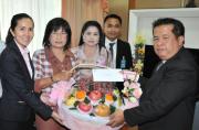 ผู้อำนวยการสำนักประชาสัมพันธ์ และนางนงนุช เศรษฐบุตร ผู้อำนวยการสำนักงานเลขานุการ ก.ร. นำกระเช้าผลไม้