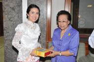 หลังจากนั้น นางสาวกัลยรัชต์ ขาวสำอางค์ ผู้อำนวยการสำนักประชาสัมพันธ์ มอบของที่ระลึกแก่อาจารย์มาลินี สาคริก