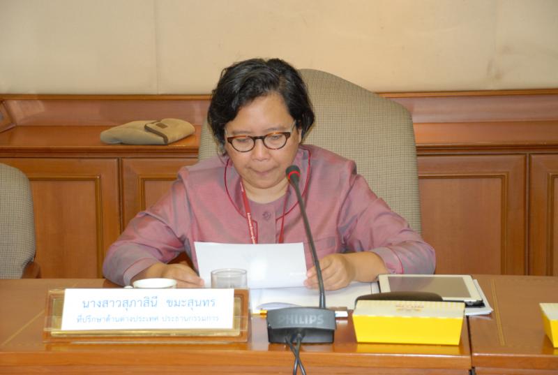 โดยมีนางสาวสุภาสินี  ขมะสุนทร ที่ปรึกษาด้านต่างประเทศ เป็นประธานในการประชุมฯ