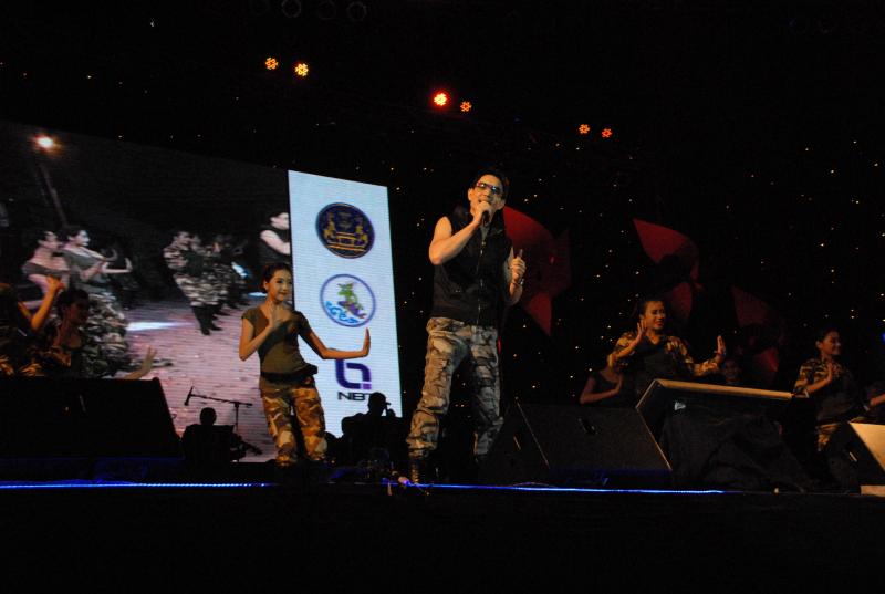 ภาพบรรยากาศงานมหกรรมคอนเสิร์ตสร้างความปรองดองสมานฉันท์เพื่อการปฏิรูป “เพลงรัก เพลงสนุก คืนความสุขให้ประชาชน”  ในวันศุกร์ที่ ๒๕ กรกฎาคม ๒๕๕๗ เวลา ๑๙.๐๐ นาฬิกา ณ สนามกีฬาอินดอร์สเตเดี้ยม หัวหมาก รามคำแหง กรุงเทพฯ จัดโดยสำนักงานเลขาธิการสภาผู้แทนราษฎร โดยสถานีวิทยุกระจายเสียงและวิทยุโทรทัศน์รัฐสภา ร่วมกับกรมประชาสัมพันธ์ และทหาร ๓ เหล่าทัพ