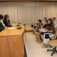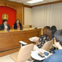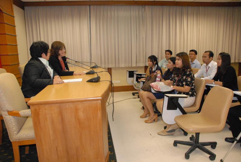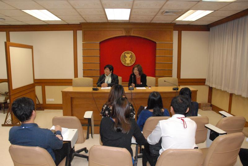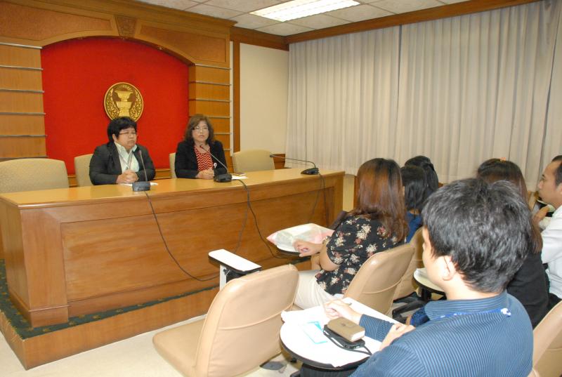 วันจันทร์ที่ ๒๘ กรกฎาคม ๒๕๕๗ ณ ห้องแถลงข่าว อาคารรัฐสภา ๑ นางศิริพรรณ วณิคพันธุ์ ผู้บังคับบัญชากลุ่มงานสื่อมวลชน และ นางสาวอารีย์วรรณ พูลทรัพย์ นักประชาสัมพันธ์ชำนาญการพิเศษ ร่วมบรรยายสรุปความสำคัญ การใช้บริการ และข้อปฏิบัติในการใช้ห้องแถลงข่าว ให้กับคณะทำงานบริหารจัดการความรู้ สำนักกรรมาธิการ ๑ ในโครงการพี่สอนน้อง