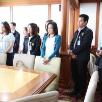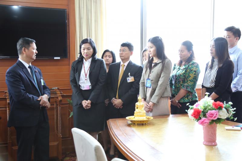 วันจันทร์ที่ ๑๓ ตุลาคม ๒๕๕๗ เวลา ๐๘.๕๓ น. ณ บริเวณหน้าห้องทำงานเลขาธิการสภาผู้แทนราษฎร นางสาวสุกัญญา หอมชื่นชม ผู้อำนวยการสำนักนโยบายและแผน พร้อมด้วยเจ้าหน้าที่ของสำนักฯ มอบพระพุทธรูปแสดงความยินดีแด่ นายจเร พันธุ์เปรื่อง เลขาธิการสภาผู้แทนราษฎร ในโอกาสที่ได้รับโปรดเกล้าฯ ให้ดำรงตำแหน่งเลขาธิการสภาผู้แทนราษฎร