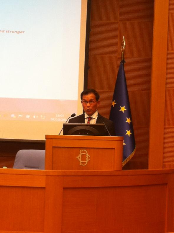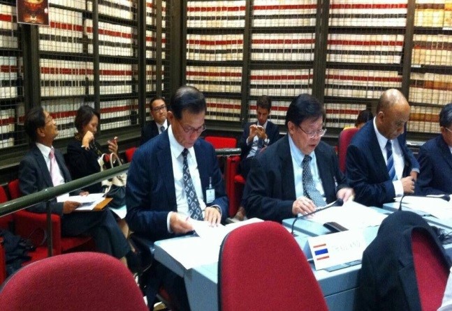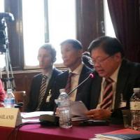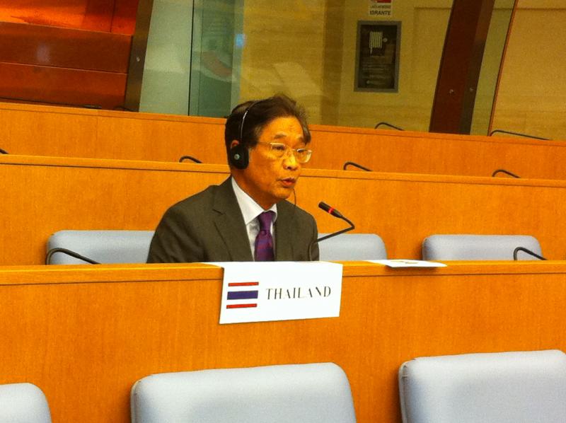 นายกิตติ วะสีนนท์ ผู้แทนสภานิติบัญญัติแห่งชาติ ได้กล่าวถ้อยแถลงในหัวข้อเรื่อง การเติบโตอย่างยั่งยืนและความมั่นคงทางอาหาร โดยเห็นว่า ประเด็นเรื่องการพัฒนาที่ยั่งยืนและความมั่นคงด้านอาหารควรจะบรรจุอยู่ในวาระการพัฒนาหลังปี พ.ศ. ๒๕๕๘ ซึ่งเน้นคนเป็นศูนย์กลาง สำหรับการเติบโตอย่างยั่งยืนก่อนปี พ.ศ. ๒๕๔๐ ไทยมีการเติบโตทางเศรษฐกิจอย่างรวดเร็ว แต่ยังคงประสบปัญหาวินัยทางการคลัง การบริหาร และจริยธรรมทางธุรกิจ อย่างไรก็ตาม เมื่อเกิดวิกฤตเศรษฐกิจในปี พ.ศ. ๒๕๔๐ ประเทศไทยได้นำหลักปรัชญาเศรษฐกิจพอเพียงตามพระราชดำริของพระบาทสมเด็จพระเจ้าอยู่หัวมาปรับใช้ในการดำเนินชีวิตและการดำเนินธุรกิจ โดยเน้นหลักพอประมาณ มีเหตุผล และมีภูมิคุ้มกัน ทำให้ประเทศไทยมิได้รับผลกระทบมากนักจากวิกฤตเศรษฐกิจในช่วงปี พ.ศ. ๒๕๕๑ สำหรับความมั่นคงทางอาหาร ไทยได้รับการขนานนามเป็นครัวของโลก และเป็นผู้ส่งออกข้าวอันดับหนึ่งของโลกในปี พ.ศ. ๒๕๕๗ และส่งออกน้ำตาลเป็นอันดับสองของโลก ประเทศไทยยังสนับสนุนความร่วมมือความมั่นคงทางอาหารภายใต้กรอบองค์กรอาหารและเกษตรแห่งสหประชาชาติ (Food and Agriculture Organization - FAO) โครงการอาหารโลก (World Food Program - WFP) และความร่วมมือภายใต้กรอบอาเซียน ทั้งนี้ ปัญหาการเปลี่ยนแปลงทางสภาพภูมิอากาศยังคงเป็นปัญหาที่ส่งผลต่อการผลิตทางการเกษตร ซึ่งประเทศในภูมิภาคเอเชียตะวันออกเฉียงใต้มีโอกาสเผชิญปัญหาความแห้งแล้งในปี พ.ศ. ๒๕๕๘ ซึ่งอาจทำให้ราคาข้าวสูงขึ้น และเศรษฐกิจเติบโตช้าลง ดังนั้น การแลกเปลี่ยนประสบการณ์กับประเทศยุโรปในการจัดการปัญหาดังกล่าวจะเป็นประโยชน์อย่างยิ่งในการกำหนดนโยบายที่เหมาะสม และไทยยินดีที่จะเข้าร่วมงาน EXPO ที่นคร-มิลาน ในปี พ.ศ. ๒๕๕๘ ภายใต้หัวข้อหลักคือ Feeding the Planet, Energy for Life โดยไทยจะจัดอาคารแสดงของไทยภายใต้หัวข้อ Nourishing and Delighting the World ในเดือนกุมภาพันธ์ พ.ศ. ๒๕๕๘ เพื่อให้สอดคล้องกับหัวข้อหลักในงาน EXPO ด้วย