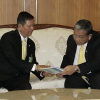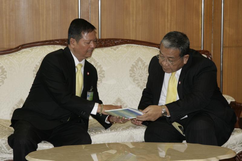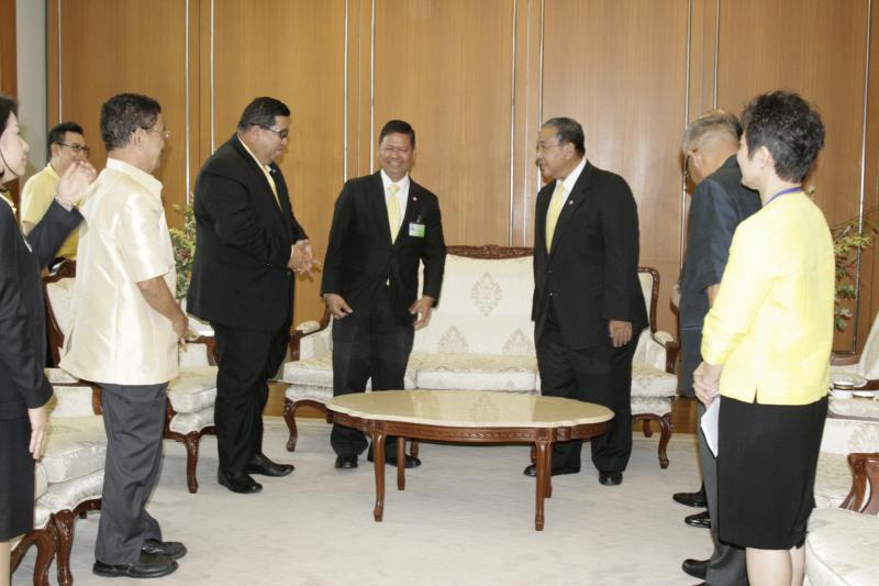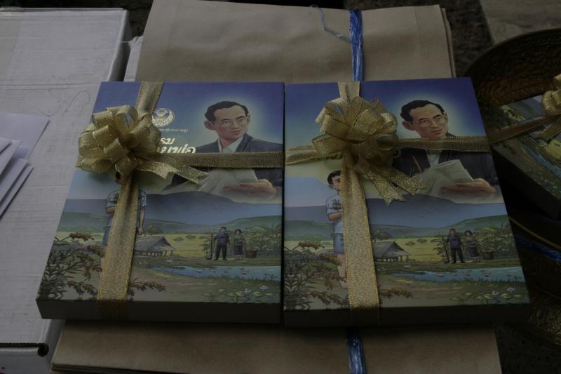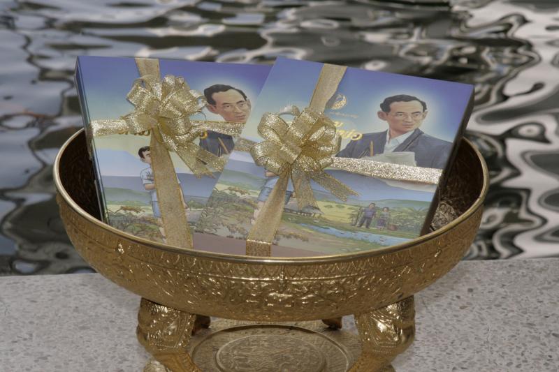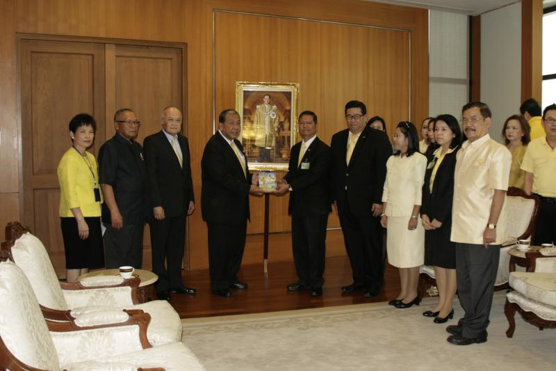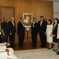 เลขาธิการสภาผู้แทนราษฎร พร้อมด้วยคณะกรรมการผลิตหนังสือการ์ตูนวิธีธรรมตามรอยพ่อ มอบหนังสือให้แก่ราชเลขาธิการ