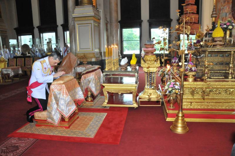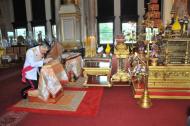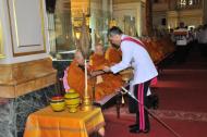 ทรงจุดธูปเทียนเครื่องนมัสการ พระสงฆ์ ๑๕ รูป เจริญพระพุทธมนต์ จบแล้ว