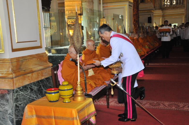 สมเด็จพระบรมโอรสาธิราชฯ ทรงประเคนผ้าไตร และจตุปัจจัยไทยธรรม