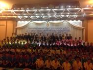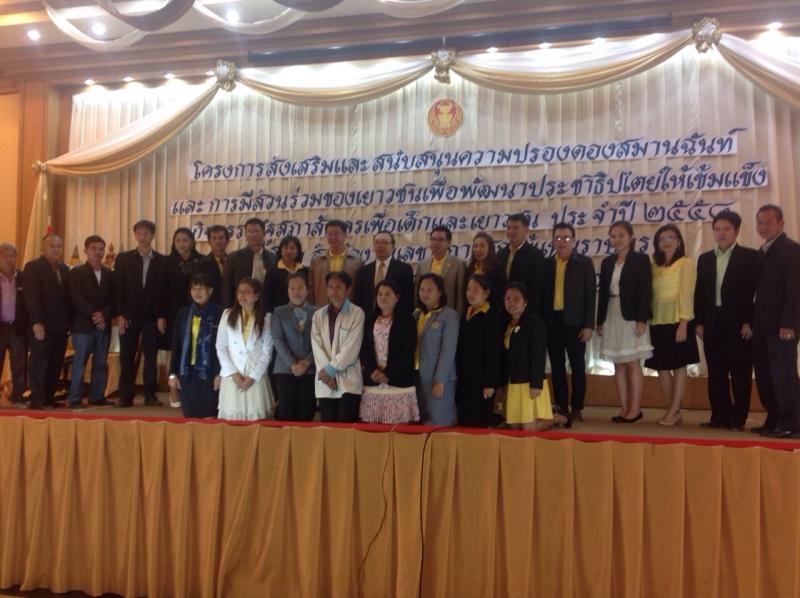 โรงเรียนต่างๆ ถ่ายรูปร่วมกับผู้เข้าร่วมกิจกรรมรัฐสภาสัญจรเพื่อเด็กและเยาวชน ระหว่างวันที่