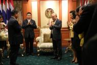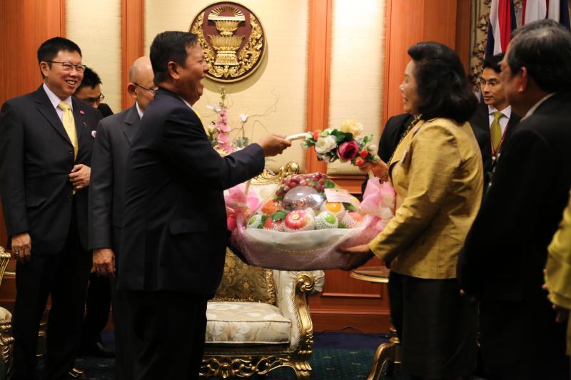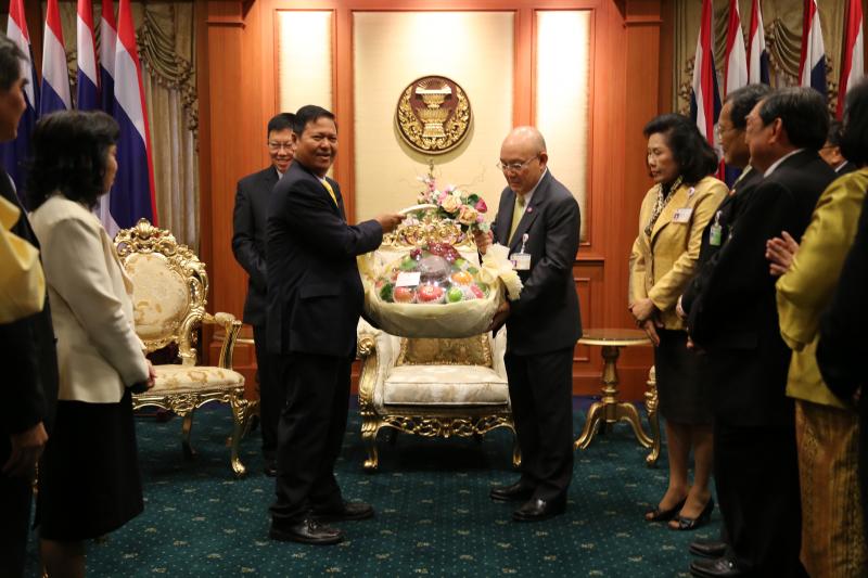 ประธานสภาปฏิรูปแห่งชาติ พร้อมด้วยรองประธานสภาปฏิรูปแห่งชาติ รับมอบกระเช้าอวยพรปีใหม่จากผู้บริหารสำนักงานเลขาธิการสภาผู้แทนราษฎร