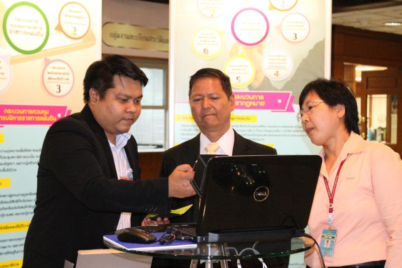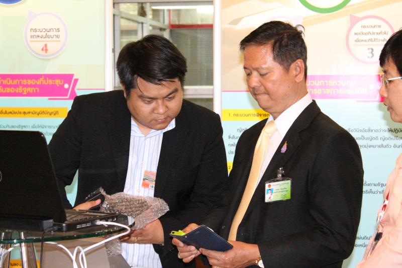 วันพุธที่ ๑๘ กุมภาพันธ์ ๒๕๕๘ เวลา ๑๕.๑๐ นาฬิกา ณ บริเวณห้องโถง อาคารรัฐสภา ๑ นายจเร พันธุ์เปรื่อง เลขาธิการสภาผู้แทนราษฎร เยี่ยมชมบูธนิทรรศการการเผยแพร่ระบบสารสนเทศด้านนิติบัญญัติ โดยเจ้าหน้าที่ได้สาธิตการใช้งานระบบสารสนเทศด้านนิติบัญญัติให้กับเลขาธิการสภาผู้แทนราษฎร ทั้งนี้ระบบดังกล่าวจะช่วยอำนวยความสะดวกให้กับบุคลากรในวงงานนิติบัญญัติ เพื่อใช้ในการสืบค้นข้อมูลต่างๆ |