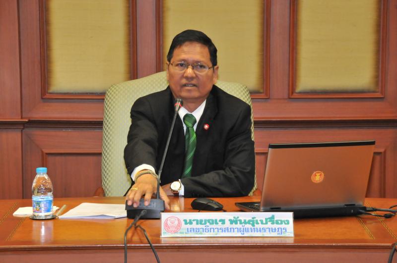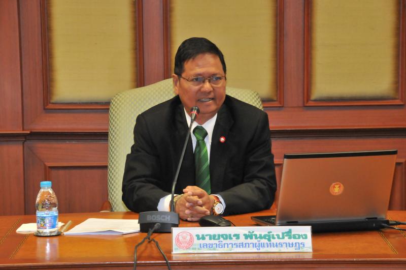 จากนั้นเวลา ๑๓.๐๐ นาฬิกา นายจเร พันธุ์เปรื่อง เลขาธิการสภาผู้แทนราษฎร บรรยายในหัวข้อ ระบบงานรัฐสภา กรรมาธิการสามัญ กรรมาธิการวิสามัญพิจารณางบประมาณ
