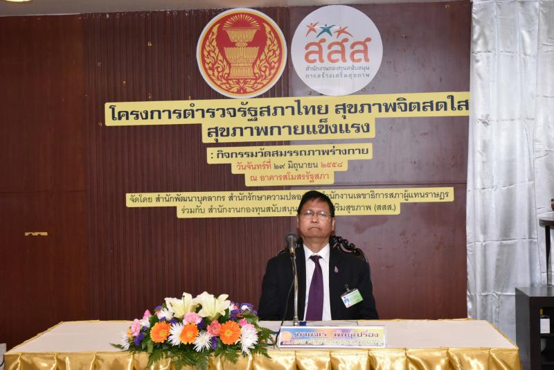 เลขาธิการสภาผู้แทนราษฎรเป็นประธานในพิธีเปิดโครงการตำรวจรัฐสภาไทย สุขภาพจิตสดใส สุขภาพกายแข็งแรง และกิจกรรมวัดสมรรถภาพร่างกาย