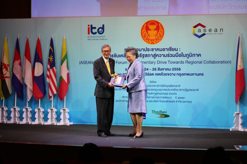 วันพฤหัสบดีที่ ๒๔ สิงหาคม ๒๕๕๘ เวลา ๐๙.๓๐ นาฬิกา ณ ศูนย์ประชุม C asean อาคารไซเบอร์เวิลด์ กรุงเทพฯ นายเตช บุนนาค อดีตรัฐมนตรีว่าการกระทรวงการต่างประเทศ และผู้ช่วยเลขาธิการฝ่ายบริหาร สภากาชาดไทย ได้กล่าวปาฐกถาพิเศษเรื่อง "ประชาคมอาเซียน : ก้าวสำคัญสู่การรวมตัวของภูมิภาค" โดยได้กล่าวถึงการรวมตัวของประชาคมอาเซียน ซึ่งเป็นก้าวสำคัญการรวมตัวของภูมิภาค โดยผลผลิตมวลรวมของประเทศอาเซียนทั้ง ๑๐ประเทศ นั้น มีมูลค่ารวมกันประมาณ ๓ ล้านล้านเหรียญสหรัฐ ซึ่งกำลังเติบโตร้อยละ ๕ ต่อปี และการค้าระหว่างประเทศอาเซียนก็มีมูลค่าประมาณ ๑ ล้านล้านเหรียญสหรัฐ โดยจุดมุ่งหมายของอาเซียนคือต้องการให้ ๑๐ ประเทศอาเซียนที่มีประชากรประมาณ ๖๐๐ ล้านคนนั้น มีฐานผลิตเดียวกันและสามารถแลกเปลี่ยนสินค้าระหว่างกันได้อย่างเสรีและปราศจากภาษี ซึ่งจะเกิดขึ้นได้ก็ต่อเมื่อประเทศอาเซียนสามารถเชื่อมโยงติดต่อกันได้อย่างสะดวก จึงต้องให้ความสำคัญกับประชาคมอาเซียนที่ประกอบด้วย ๓ เสาหลัก ได้แก่ การเมืองและความมั่นคง เศรษฐกิจ รวมทั้งสัมคมและวัฒนธรรม โดยในส่วนของการเมืองและความมั่นคงนั้น ประชาคมอาเซียนจะเป็นเครื่องมือที่สำคัญที่จะช่วยให้เราขจัดความขัดแย้งในภูมิภาคเอเชียตะวันออกเฉียงใต้โดยสันติวิธี รวมถึงอาเซียนยังสามารถขจัดความขัดแย้งในภูมิภาคเอเชียโดยรวม ไม่ว่าจะเป็น เอเชียตะวันออก เอเชียใต้ และเอเชียกลาง ได้อีกส่วนหนึ่งด้วย นอกจากนี้การที่เราได้รู้จักวัฒนธรรมและสังคมของประเทศต่าง ๆ นั้นจะสร้างความไว้เนื้อเชื่อใจและความสนิทใจมากยิ่งขึ้น และจะนำไปสู่การแก้ไขปัญหาอื่น ๆ ได้ ดังนั้นเราจะต้องใช้เครื่องมือต่าง ๆ ของอาเซียนให้เกิดความสมานฉันท์และความสงบในอาเซียนได้ ทั้งนี้ ได้ฝากถึงด้านสังคมคือเรื่องของสิทธิมนุษยชน ได้แก่เรื่องการค้ามนุษย์ ที่จะต้องมีการแก้ไขปัญหาในเรื่องนี้อย่างจริงจังต่อไป