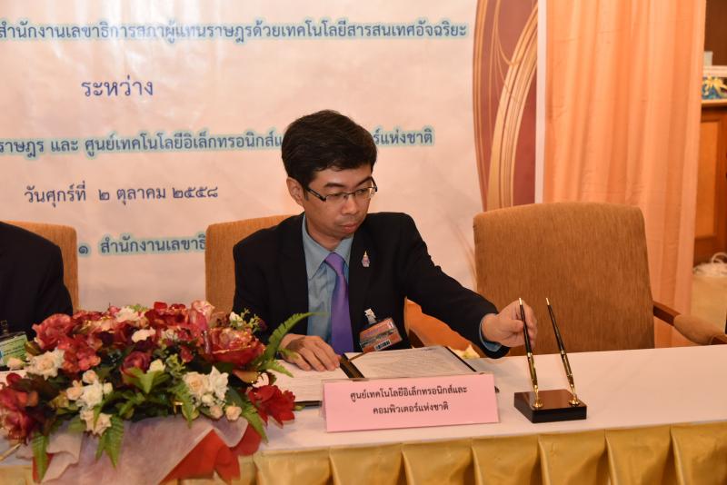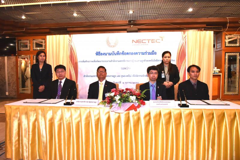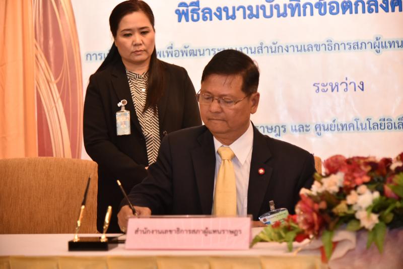 พิธีลงนามบันทึกข้อตกลงความร่วมมือ "การเพิ่มศักยภาพเพื่อพัฒนาระบบงานสำนักงานเลขาธิการสภาผู้แทนราษฎรด้วยเทคโนโลยีสารสนเทศอัจฉริยะ" ระหว่าง สำนักงานเลขาธิการสภาผู้แทนราษฎรกับศูนย์เทคโนโลยีอิเล็กทรอนิกส์และคอมพิวเตอร์แห่งชาติ