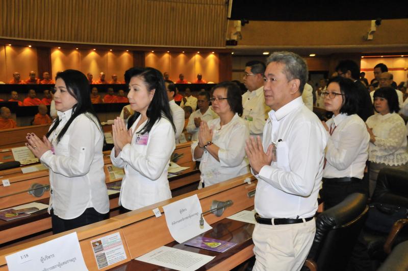 สัมโมทนียกถาเปิดงาน  จากนั้นพระสงฆ์ ๑๐๓ รูป เจริญพระพุทธมนต์ ประธานในพิธีและคณะ ถวายภัตตาหาร