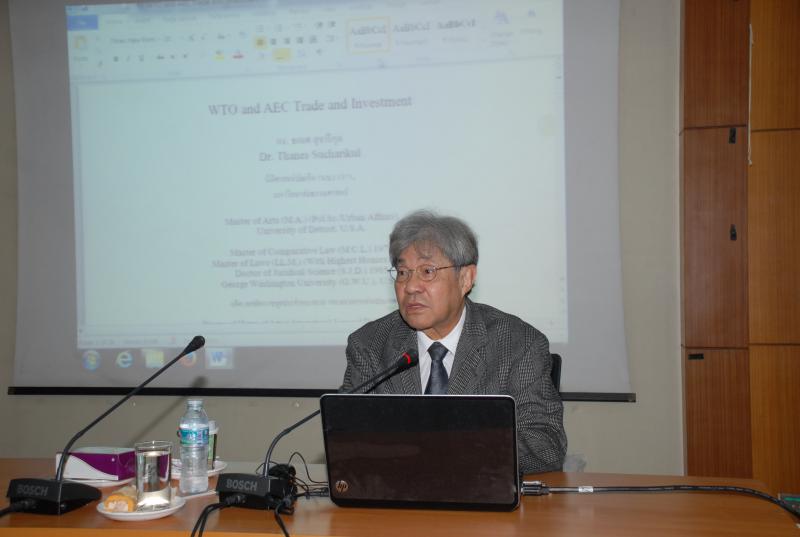 กฎหมายระหว่างประเทศ ซึ่งได้มีการบรรยายให้ความรู้เกี่ยวกับกฎหมายที่เกี่ยวข้องกับประชาคมอาเซียน ครอบคลุม ๓ เสาหลักประชาคมอาเซียน เสาประชาคมเศรษฐกิจ และความตกลงด้านการค้าและการลงทุนของอาเซียน โดยมี ดร.ธเนศ สุจารีกุล จากคณะนิติศาสตร์ มหาวิทยาลัยอัสสัมชัญ เป็นวิทยากร
