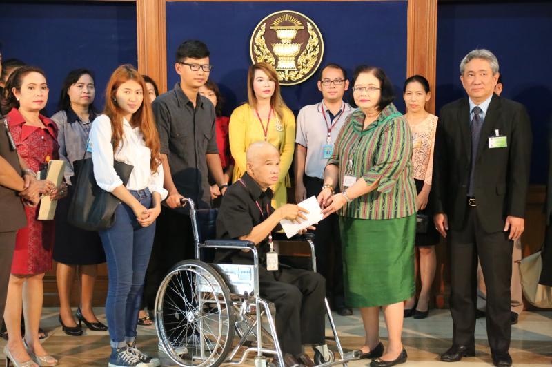 วันศุกร์ที่ ๔ มีนาคม ๒๕๕๙ เวลา ๐๙.๓๐ นาฬิกา ณ บริเวณห้องโถง อาคารรัฐสภา ๑ นางสายทิพย์ เชาวลิตถวิล เลขาธิการสภาผู้แทนราษฎร นายสรศักดิ์ เพียรเวช รองเลขาธิการสภาผู้แทนราษฎร ผู้บริหารสำนักงาน และข้าราชการสำนักงานเลขาธิการสภาผู้แทนราษฎร ร่วมมอบเงินช่วยเหลือเพื่อบรรเทาความเดือดร้อนให้แก่ นายประกอบ แก้วอาจ พนักงานขับรถ กลุ่มงานยานพาหนะ สำนักการคลังและงบประมาณ ที่ป่วยด้วยอาการเส้นเลือดในสมองแตกและเข้ารับการรักษา ณ โรงพยาบาลสถาบันประสาทวิทยา ซึ่งอาการดังกล่าวมีความจำเป็นต้องใช้ยานอกบัญชียาหลักแห่งชาติ และไม่สามารถเบิกทางราชการได้ และจะต้องมีค่าใช้จ่ายเครื่องเวชภัณฑ์ต่าง ๆ อาทิ ผ้าอ้อมสำหรับผู้ใหญ่ เป็นต้น