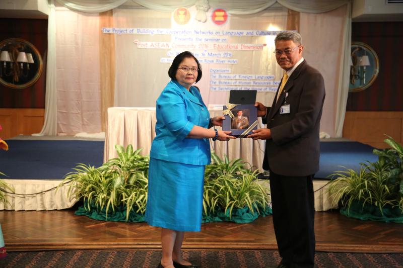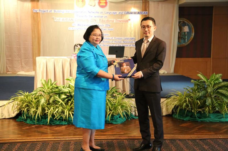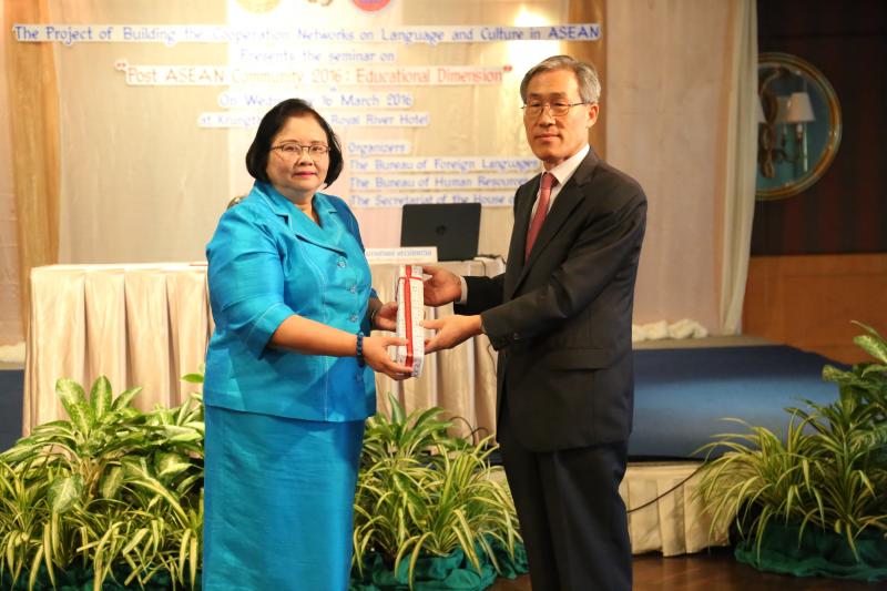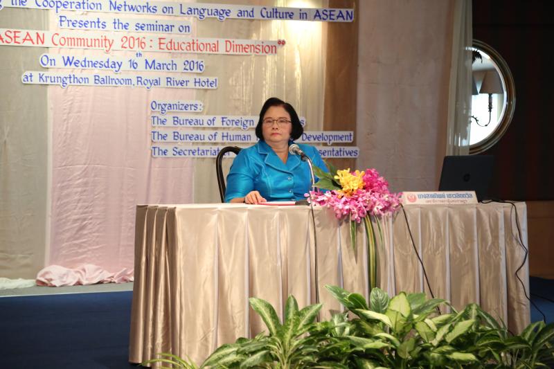 วันพุธที่ ๑๖ มีนาคม ๒๕๕๙ เวลา ๐๙.๐๐ นาฬิกา ณ ห้องกรุงธนบอลล์รูม โรงแรมรอยัลริเวอร์ บางพลัด กรุงเทพมหานคร นางสายทิพย์ เชาวลิตถวิล เลขาธิการสภาผู้แทนราษฎร เป็นประธานในพิธีเปิดโครงการสัมมนาทางวิชาการเรื่อง " ก้าวต่อไปหลังประชาคมอาเซียน ๒๕๕๙ : มิติทางด้านการศึกษา" ภายใต้โครงการสร้างเครือข่ายความร่วมมือด้านภาษาและวัฒนธรรมในภูมิภาคอาเซียน ประจำปีงบประมาณ พ.ศ. ๒๕๕๙ กล่าวรายงานโดย นางสินีนาถ ดุลยสุข ผู้อำนวยการสำนักภาษาต่างประเทศ ทั้งนี้ มีการบรรยายพิเศษ เรื่อง "ทิศทางการปฏิรูปศึกษาของไทยกับความเป็นพลเมืองอาเซียน" โดย นายวิวัฒน์ ศัลยกำธร ประธานคณะกรรมาธิการขับเคลื่อนการปฏิรูปประเทศด้านการศึกษา สภาขับเคลื่อนการปฏิรูปประเทศ และในช่วงบ่าย มีการเสวนา เรื่อง "บทบาทเกาหลี : การเชื่อมโยงด้านการศึกษากับภูมิภาคอาเซียน" โดย นายชิน ฮยอง - อึน อัครราชทูตสาธารณรัฐเกาหลีประจำประเทศไทย นายคิม กวัง โฮ ประธานสถาบันระดับชาติว่าด้วยการศึกษานานาชาติ สาธารณรัฐเกาหลี และดร. คิม แทอู (มหาวิทยาลัยฮันกุก ภาษาและกิจการต่างประเทศสาธารณรัฐเกาหลี) อาจารย์พิเศษ มหาวิทยาลัยสงขลานครินทร์ และเสวนา เรื่อง "ทิศทางการศึกษาและการปรับตัวหลังการเปิดประชาคมอาเซียน" โดย Mr. Phann Makara เลขานุการเอกประจำสถานเอกอัครราชทูตราชอาณาจักรกัมพูชาประจำประเทศไทย ผศ.ดร. สุนิดา อรุณพิพัฒน์ อาจารย์ประจำหลักสูตรปริญญาโทอาเซียนศึกษา วิทยาลัยนานาชาติปรีดี พนมยงค์ มหาวิทยาลัยธรรมศาสตร์ และรามเซส ดิลิ วิทยาลัยนานาชาติปรีดี พนมยงค์ มหาวิทยาลัยธรรมศาสตร์