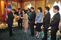 ร้อยเอก ทินพันธุ์  นาคะตะ  ประธานสภาขับเคลื่อนการปฏิรูปประเทศ  รับมอบกระเช้าผลไม้จาก