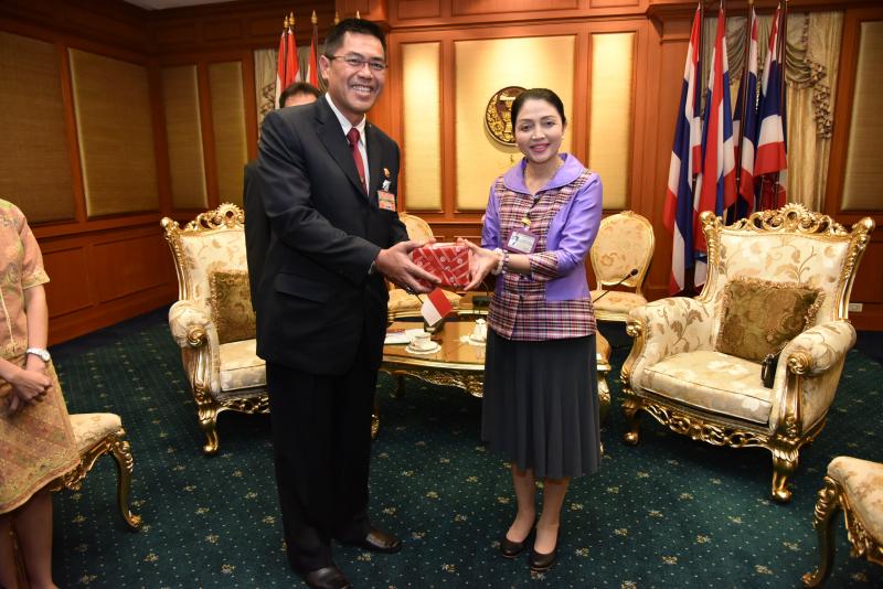 ที่ปรึกษาด้านระบบงานนิติบัญญัติ กล่าวต้อนรับหัวหน้าสำนักกิจการทั่วไป สำนักงานเลขาธิการสภาผู้แทนราษฎร สาธารณรัฐอินโดนีเซีย และคณะ พร้อมกับกล่าวถึงเลขาธิการสภาผู้แทนราษฎร ว่าติดภารกิจจึงไม่สามารถมาให้การรับรองได้ จากนั้นได้แนะนะคณะผู้บริหารของสำนักงานฯ ที่ร่วมให้การรับรองในครั้งนี้ และกล่าวว่าทางสำนักงานเลขาธิการสภาผู้แทนราษฎร มีความยินดีเป็นอย่างยิ่งที่คณะสำนักงานเลขาธิการสภาผู้แทนราษฎร สาธารณรัฐอินโดนีเซีย ได้ให้ความสำคัญ และสนใจแลกเปลี่ยนประสบการณ์ ความรู้เกี่ยวกับการปฏิบัติงานของสำนักงานเลขาธิการสภาผู้แทนราษฎรไทย ในเรื่องระบบงานสารบรรณ การจัดซื้อจัดจ้าง และการรักษาความปลอดภัย ซึ่งทางสำนักงานฯ ได้จัดเตรียมผู้บรรยายที่มีความรู้ และประสบการณ์ในด้านต่าง ๆ ไว้พร้อมแล้ว โดยการศึกษาดูงานในครั้งนี้จะเป็นประโยชน์ต่อสำนักงานทั้งสอง ในการพัฒนางานด้านต่าง ๆ เพื่อให้บริการประชาชน และสมาชิกอย่างดีที่สุดต่อไปในอนาคต ในโอกาสนี้ ได้กล่าวถึงนายอิสรา สุนทรวัฒน์ ที่จะดำรงตำแหน่งเลขาธิการสมัชชารัฐสภาอาเซียน ตั้งแต่วันที่ ๑ ตุลาคม ๒๕๕๙ ถึงวันที่ ๓๐ กันยายน ๒๕๖๒ ณ สำนักงานเลขาธิการสมัชชารัฐสภาอาเซียน กรุงจาการ์ต้า สาธารณรัฐอินโดนีเซีย ซึ่งจะต้องมีการประสานงานระหว่างกัน จึงขอความอนุเคราะห์ให้สำนักงานเลขาธิการสภาผู้แทนราษฎร สาธารณรัฐอินโดนีเซีย ให้การสนับสนุนด้วย