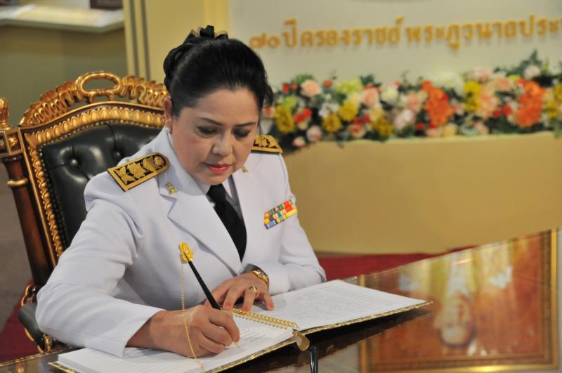 สมเด็จพระบรมโอรสาธิราชฯ สยามมกุฎราชกุมาร อย่างพร้อมเพรียงกัน โดยมี นางนงนุช เศรษฐบุตร