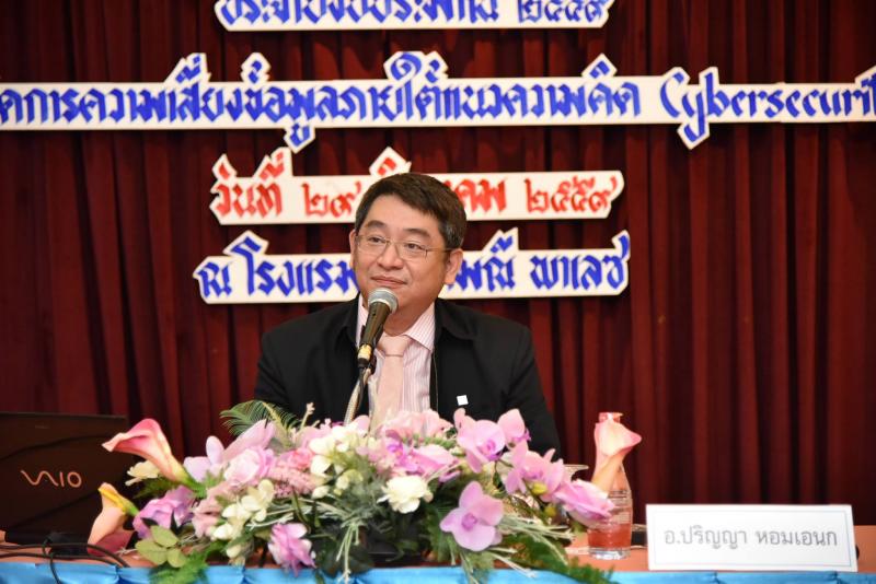 วันจันทร์ที่ ๒๙ สิงหาคม ๒๕๕๙ เวลา ๐๘.๔๕ นาฬิกา ณ ห้องกานต์มณี บอลรูม ชั้น ๑ โรงแรมกานต์มณี พาเลซ กรุงเทพฯ นางสายทิพย์ เชาวลิตถวิล เลขาธิการสภาผู้แทนราษฎร เป็นประธานเปิดการสัมมนาด้านไอซีทีสำหรับข้าราชการสำนักงานเลขาธิการสภาผู้แทนราษฎร ประจำปีงบประมาณ ๒๕๕๙ “การจัดการความเสี่ยงข้อมูลภายใต้แนวความคิด Cybersecurity” โดยมี นายประวิช ตั้งใจมั่น ที่ปรึกษาด้านเทคโนโลยีสารสนเทศ กล่าวรายงาน จากนั้น เป็นการบรรยายในหัวข้อ “การจัดการความเสี่ยงข้อมูลภายใต้แนวความคิด Cybersecurity” โดย อาจารย์ปริญญา หอมอเนกซึ่งการจัดสัมมนานี้ สำนักสารสนเทศจัดขึ้นเพื่อให้บุคลากรของสำนักงานฯ เกิดความรู้ ความเข้าใจ ถึงภัยคุกคามต่าง ๆ ที่มาจากโลกไซเบอร์ ปัญหาทางด้านความปลอดภัย และมาตรการในการรักษาความปลอดภัย การใช้งาน Social Network เพื่อให้ได้มาซึ่งข้อมูล ที่เป็นประโยชน์ด้านการรักษาความปลอดภัย หรือภัยคุกคามต่าง ๆ ที่มาจากโลกไซเบอร์ ภายใต้แนวความคิดด้านการจัดการความเสี่ยงข้อมูล Cybersecurity อีกทั้งเป็นเวทีแลกเปลี่ยน