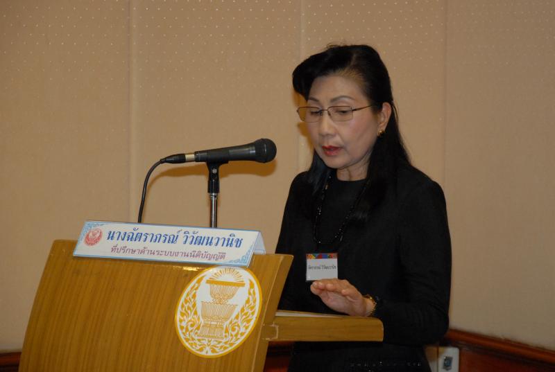 โดยมี นางฉัตราภรณ์ วิวัฒนวานิช ที่ปรึกษาด้านระบบงานนิติบัญญัติ เป็นผู้กล่าวรายงาน จากนั้น