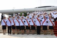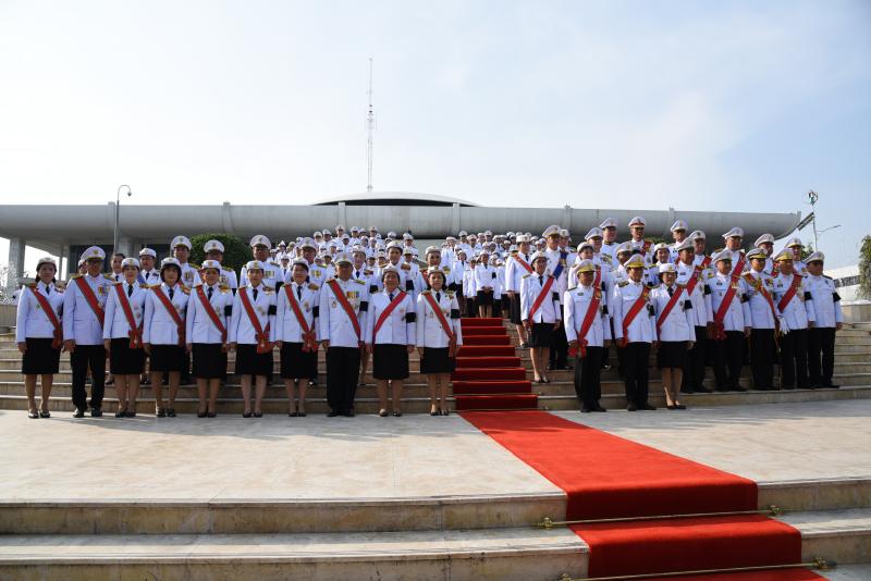 พร้อมด้วยสมาชิกสภาขับเคลื่อนการปฏิรูปประเทศ นำพานประดับพุ่มดอกไม้ ถวายบังคม ในนาม
