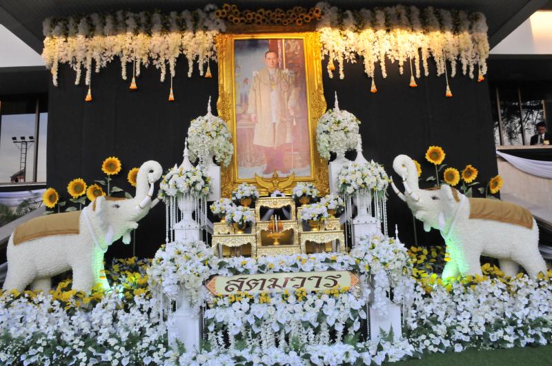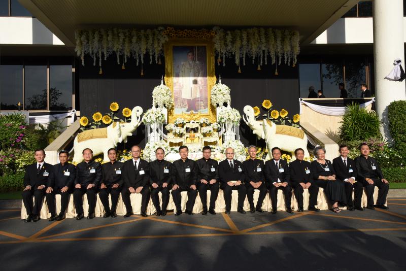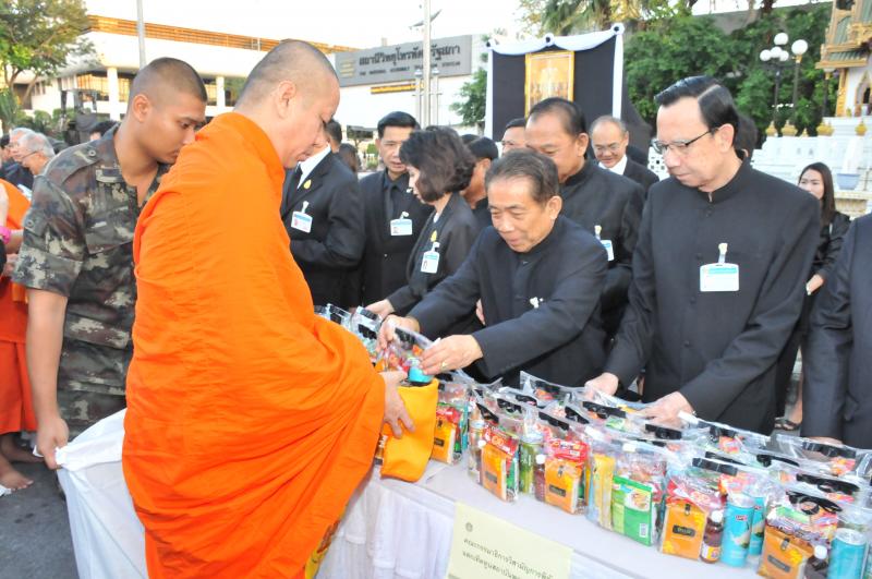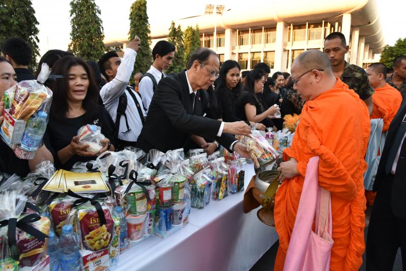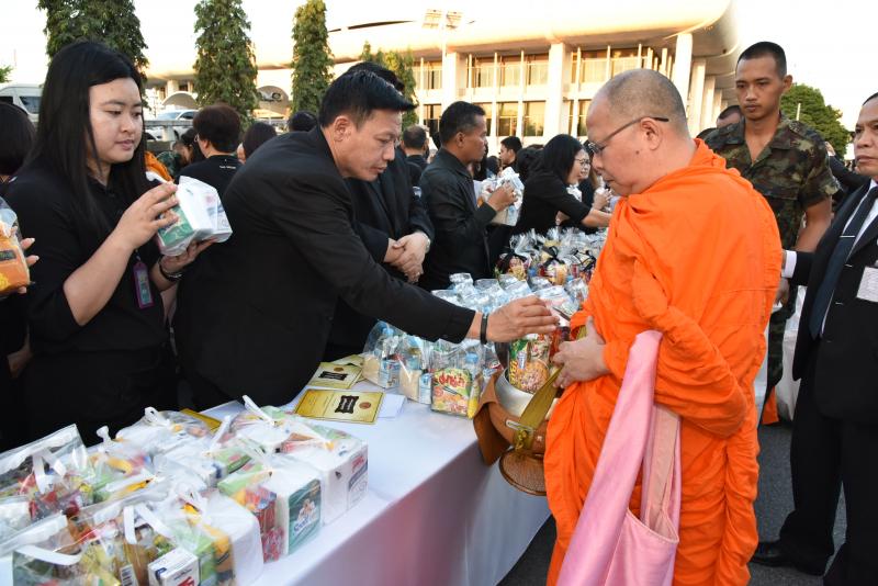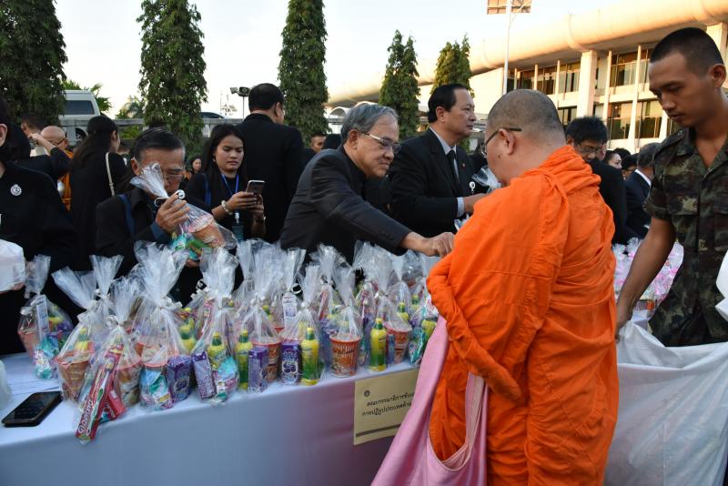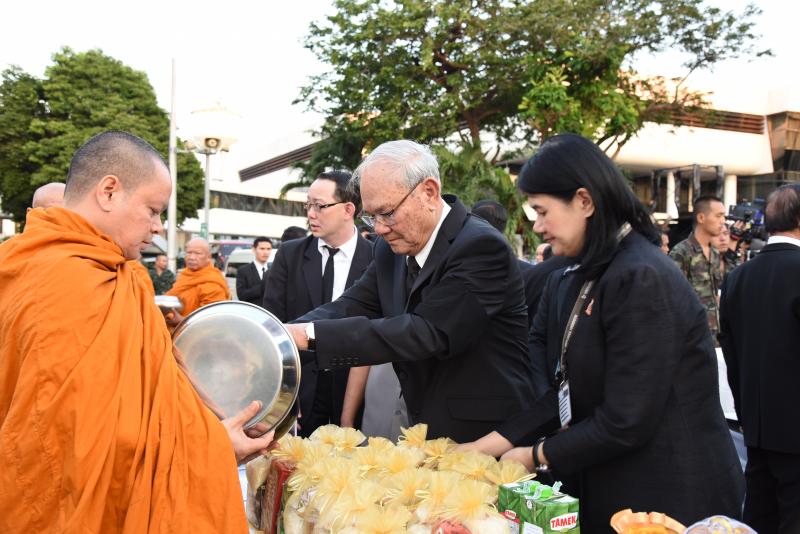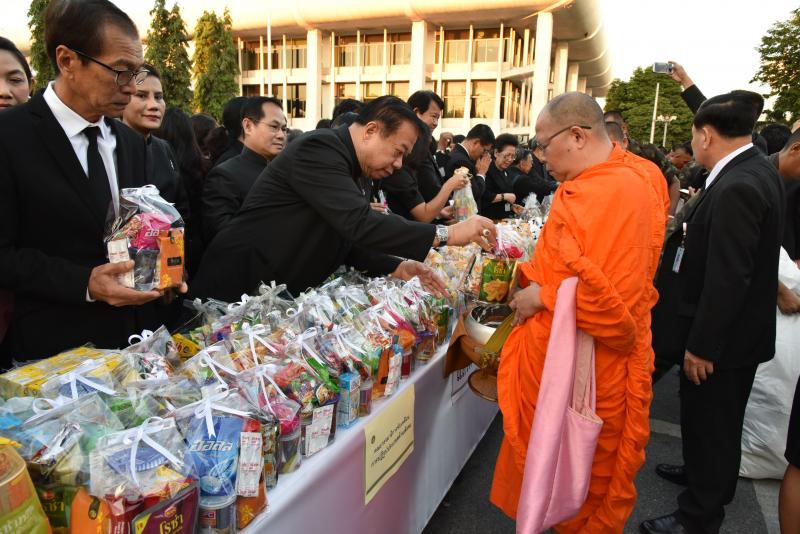เมื่อเสร็จพิธีตักบาตร ประธานสภานิติบัญญัติแห่งชาติ ได้กล่าว แสดงความอาลัยน้อมเกล้า
