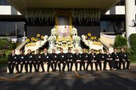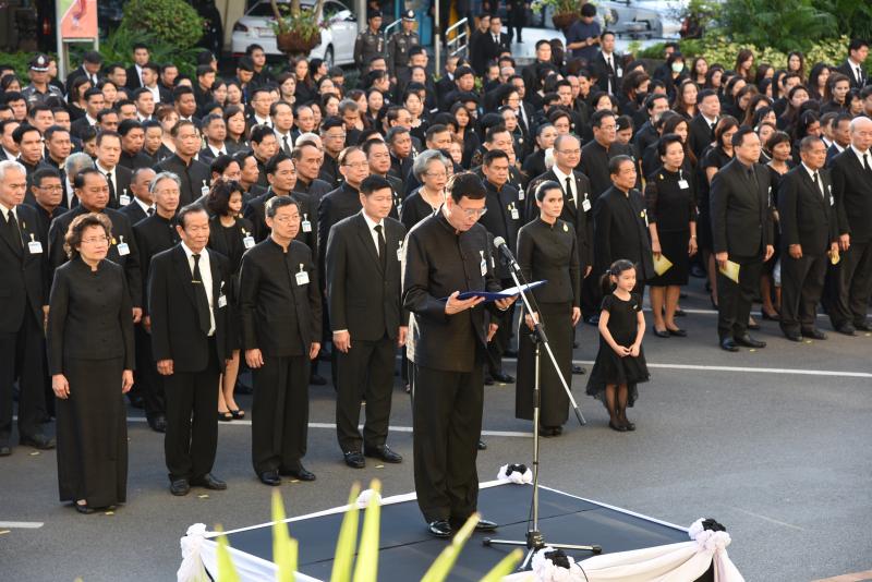 น้อมกระหม่อมถวายพระบาทสมเด็จพระปรมินทรมหาภูมิพลอดุลยเดช จากนั้น ผู้เข้าร่วมพิธีได้ยืน